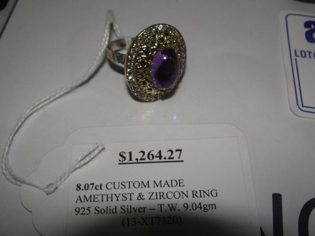 925 SOLID SILVER 8.07CARAT CUSTOM MADE AMETHYST AND ZIRCON RING APPRAISED VALUE $1264.27