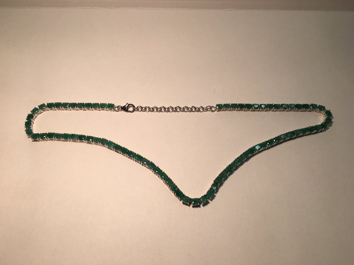 .925 STERLING SILVER AND EMERALD NECKLACE SET WITH 18.75CT OF GREEN MODIFIED OVAL NATURAL EMERALDS REPLACEMENT VALUE:$3211.00
