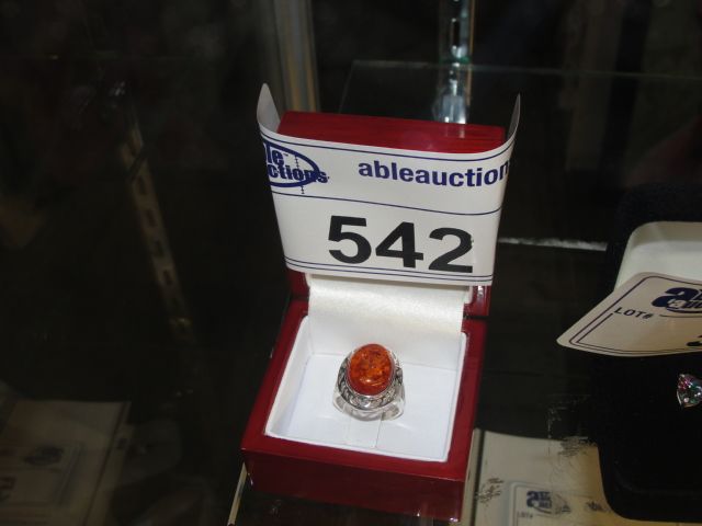.925 STERLING SILVER CUSTOM MADE BALTIC AMBER RING