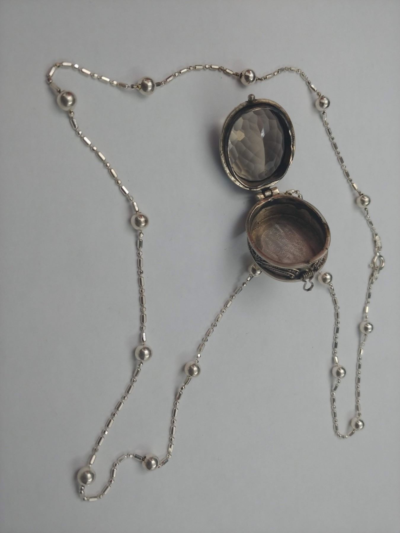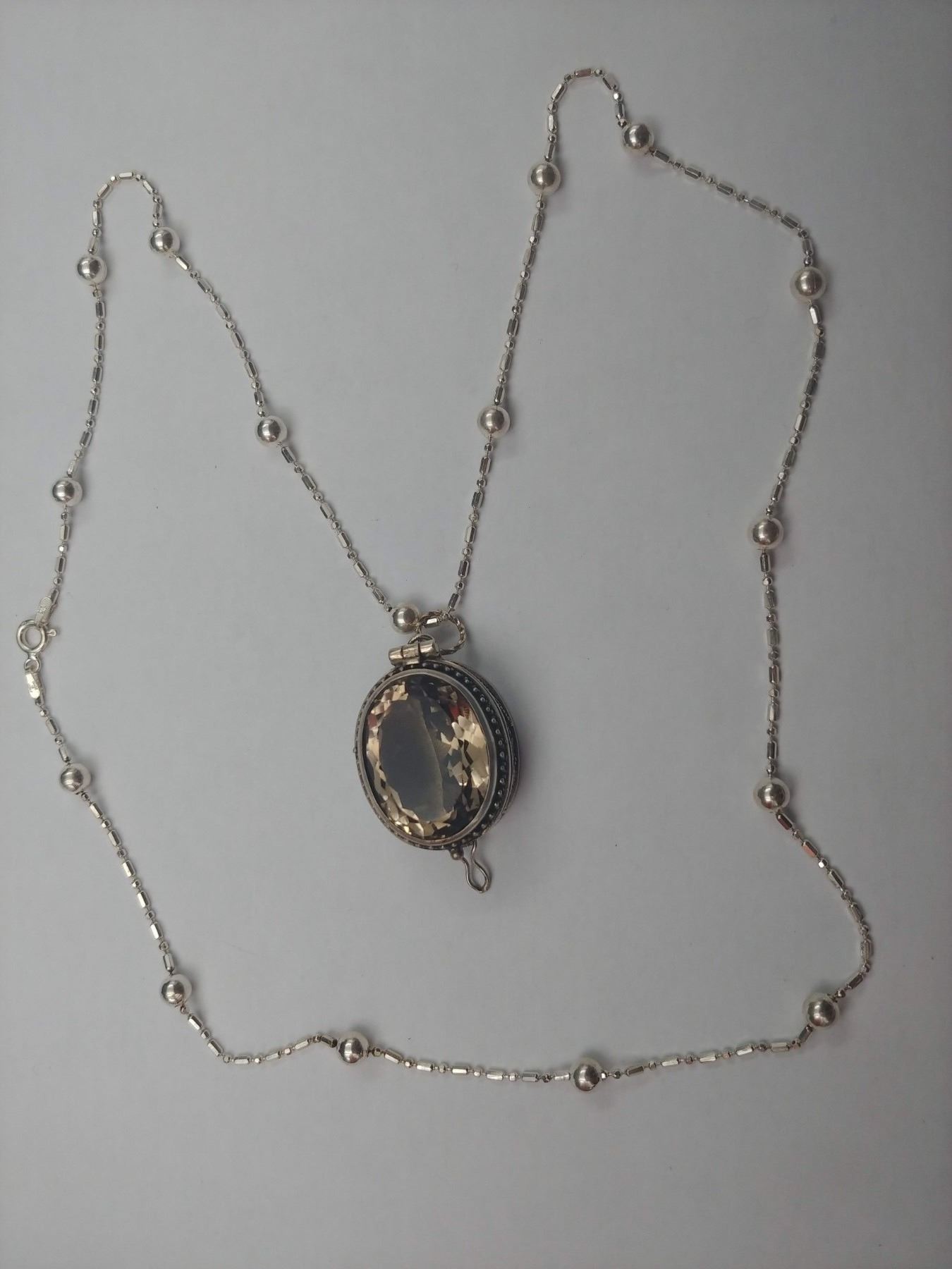 .925 STERLING SILVER NECKLACE WITH BROWN STONE LOCKET