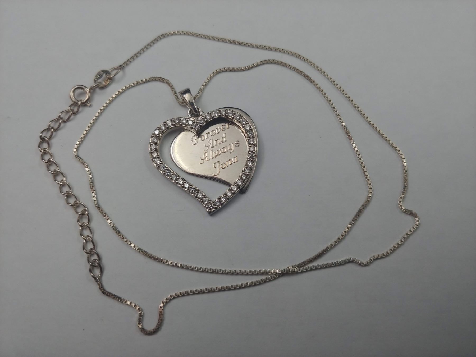 .925 STERLING SILVER NECKLACE WITH WHITE GEM HEART PENDANT