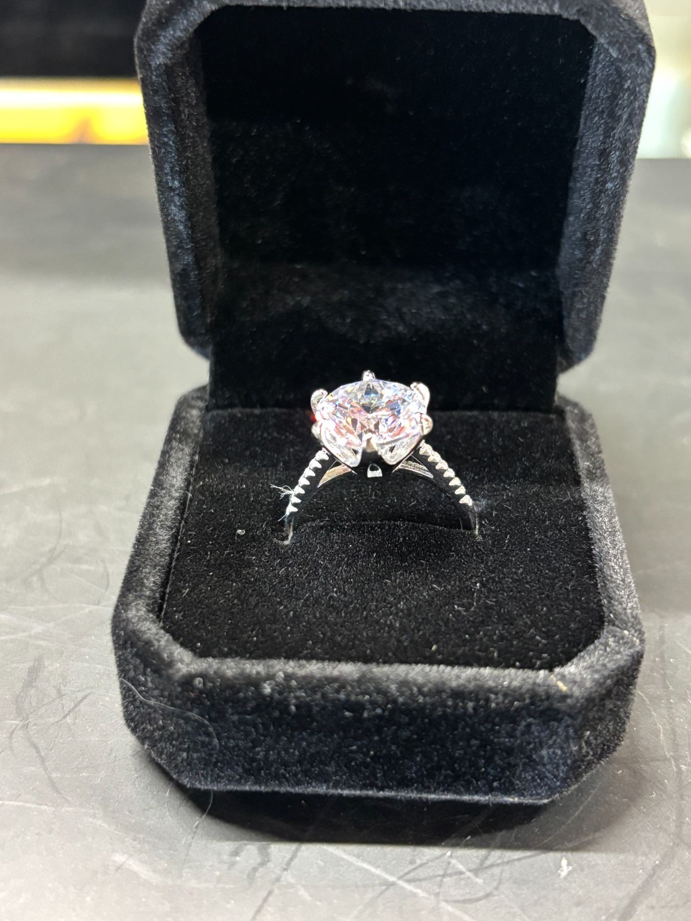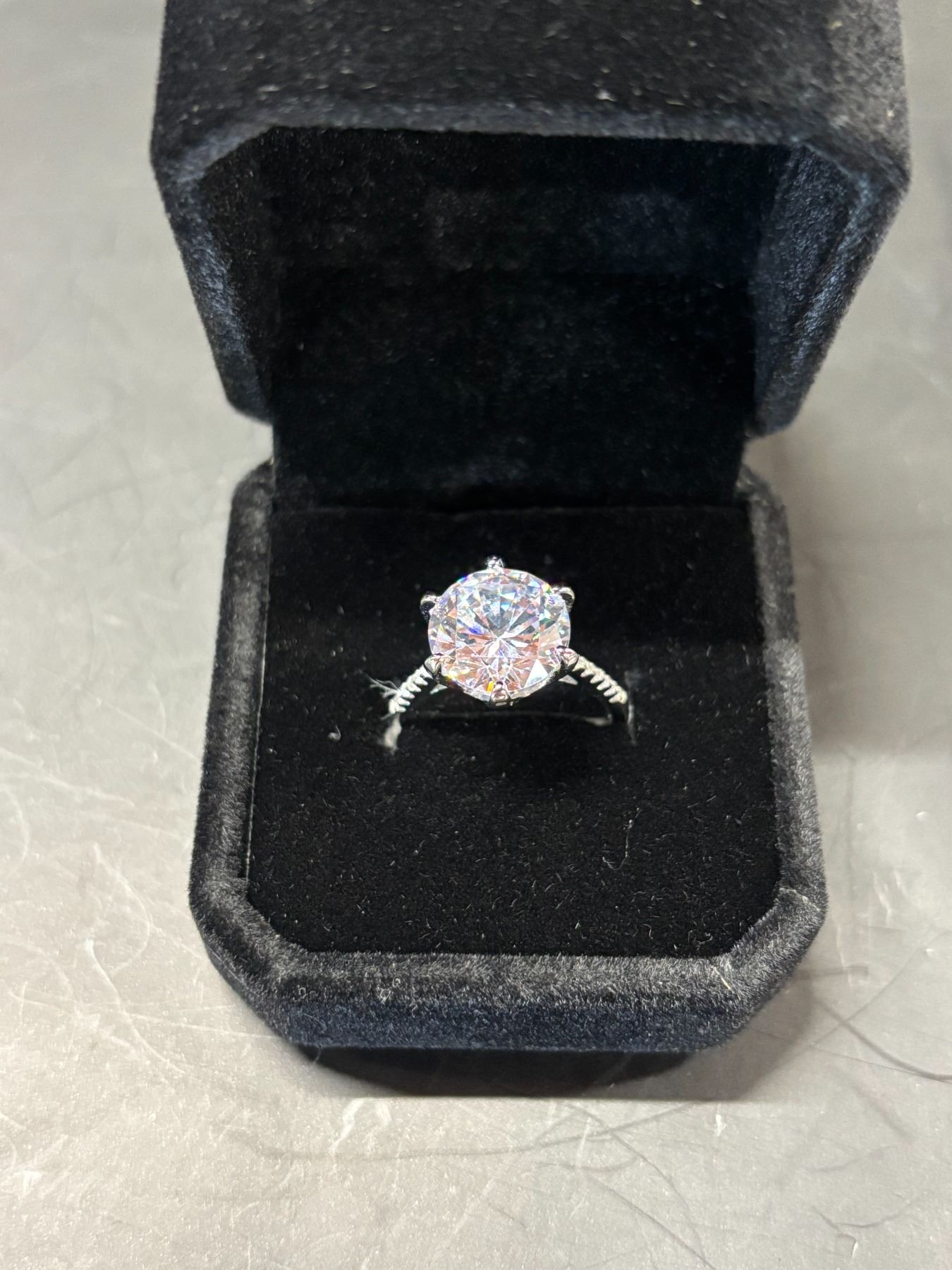 925S 5.0CT SIMULATED DIAMOND (CZ) RING - SIZE 7 - MOUNTED IN 925 STERLING SILVER WITH WHITE GOLD OVERLAY