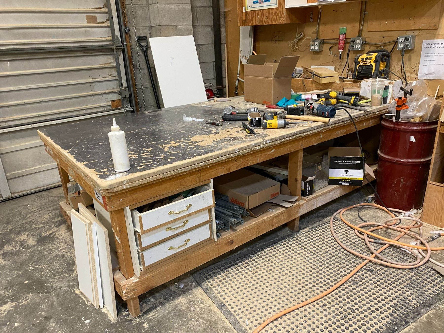 97"X50"X30" WORK STATION WITH 7 DRAWERS AND CONTENTS