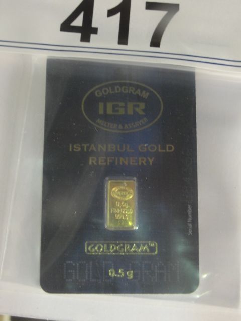 999.9 PURE ISTANBUL GOLD BAR, TURKISH MINT, SERIAL NUMBERED WITH ASSAY CARD, TAX EXEMPT