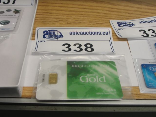 .999 SOLID GOLD CERTIFIED WITH SERIAL NUMBER INVESTORS BAR - TAX EXEMPT