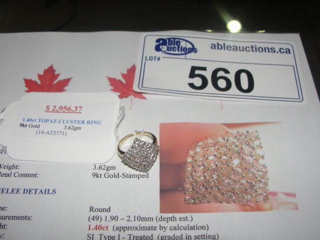 9KT GOLD 1.40CARAT TOPAZ CLUSTER RING APPRAISED VALUE $2956.37