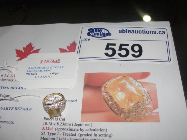9KT GOLD 4.64CARAT QUARTZ AND TOPAZ COCKTAIL RING APPRAISED VALUE $2874.45
