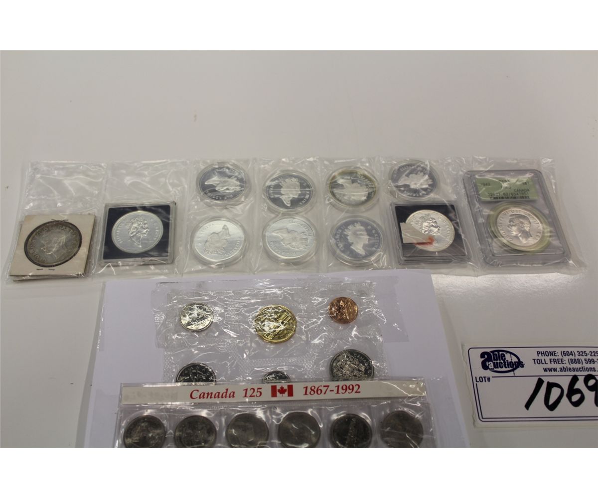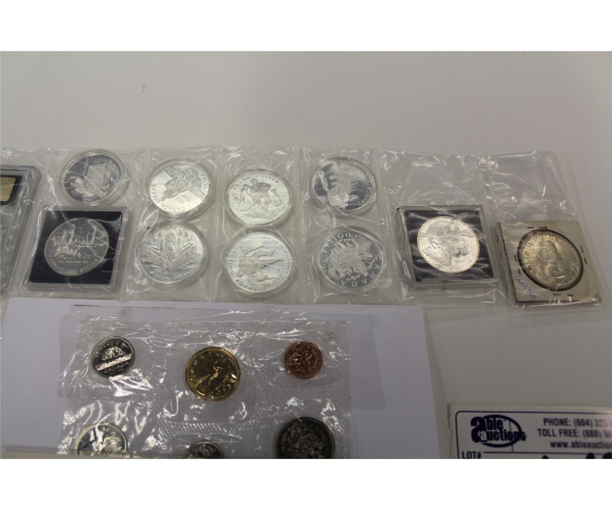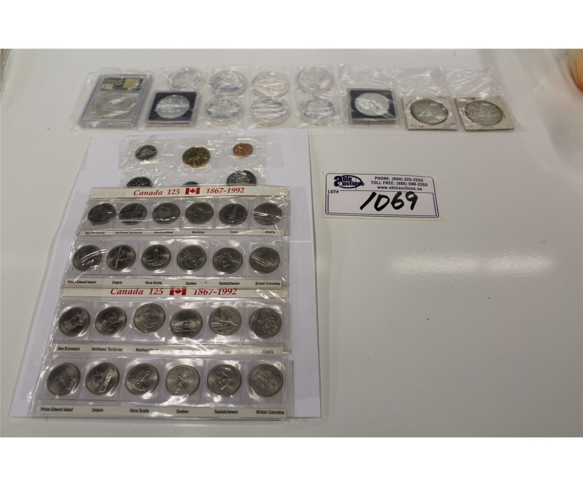 A COLLECTION OF ROYAL CANADIAN MINT COINS INCLUDING:1949 SILVER $1 MS62, 11 CANADIAN $1 COINS, A COLLECTION OF 125 ANNIVERSARY QUARTERS AND ASSORTED OTHER COINS