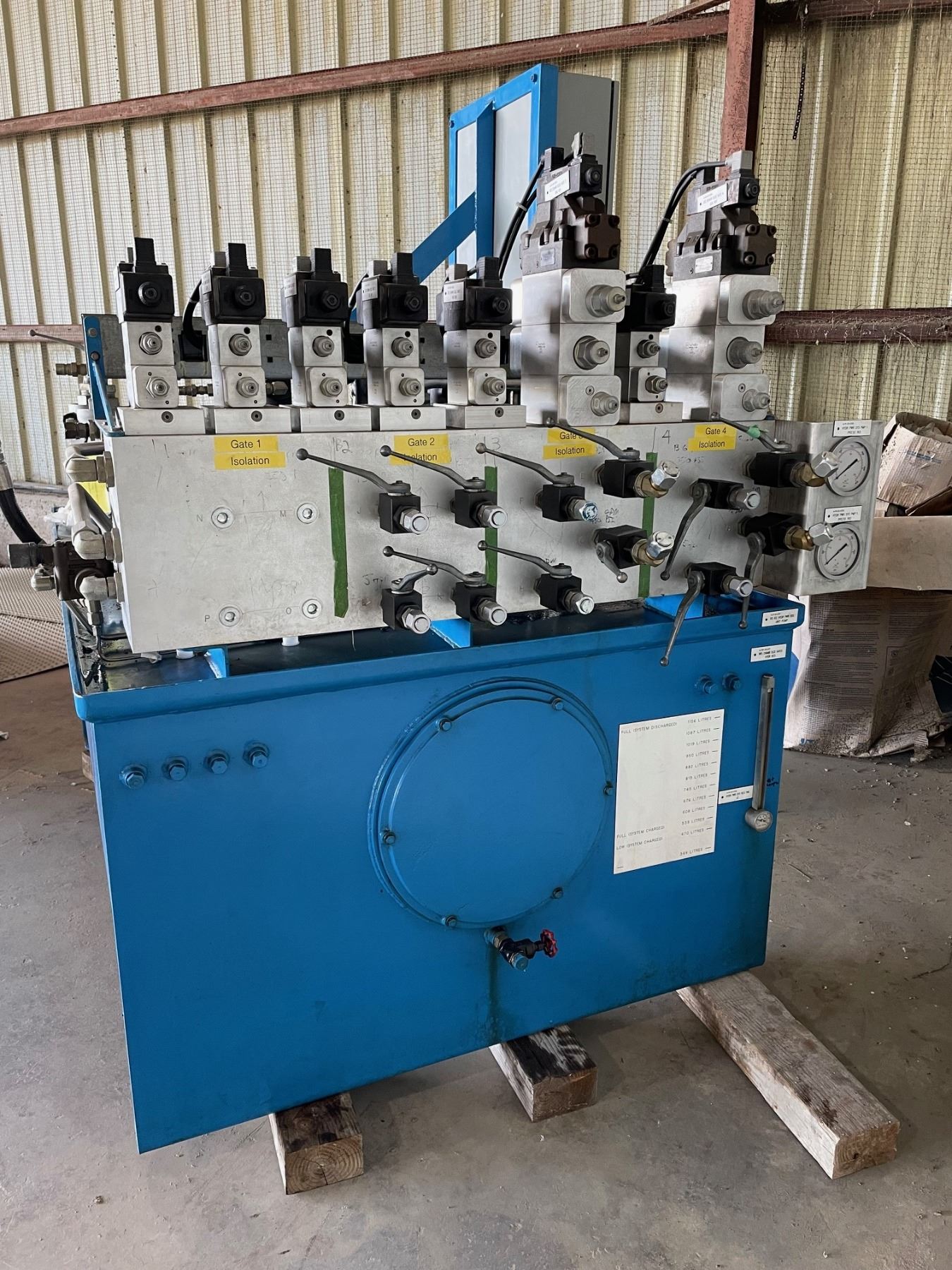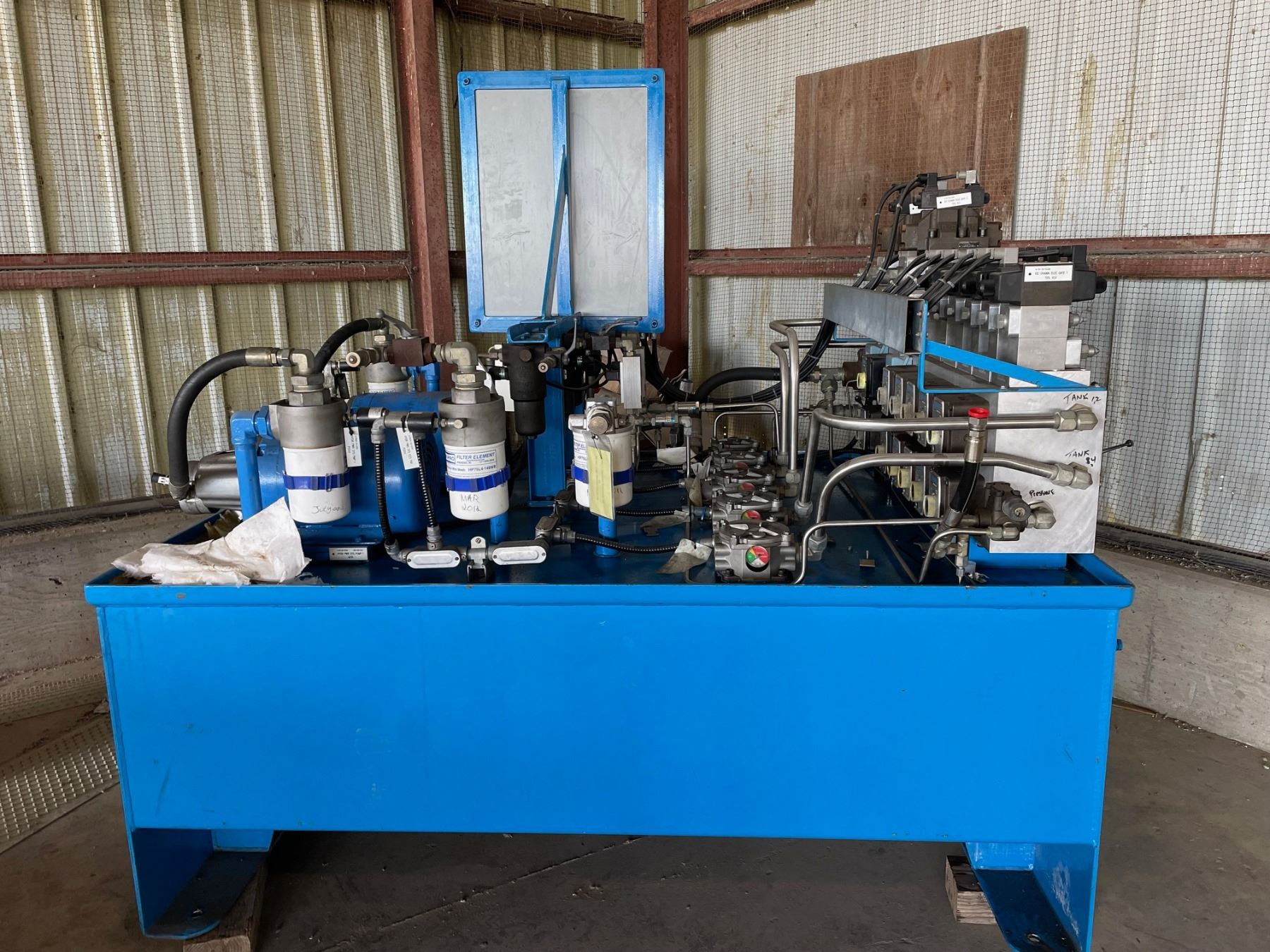 A-LCP-20-037B - 2 PUMP SUPER E BALDOR ELECTRIC MOTOR HEAVY DUTY INDUSTRIAL HYDRAULIC POWER SYSTEM WITH VICKERS ADJUSTABLE CONTROL & LARGE HYDRAULIC RESERVOIR TANK