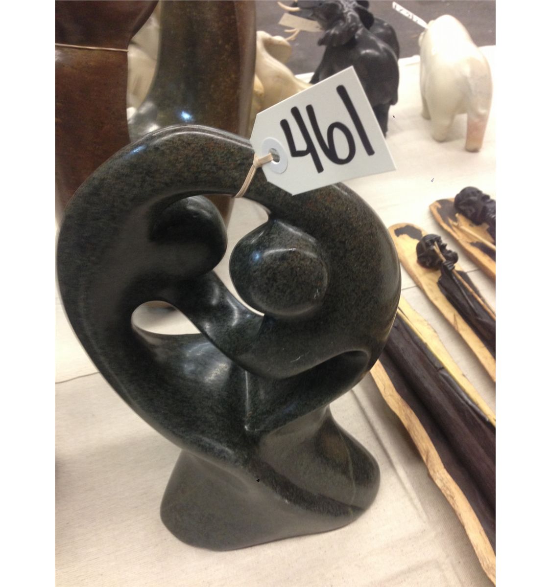A SPRING STONE, HAND CARVED ABSTRACT, 15" TALL
