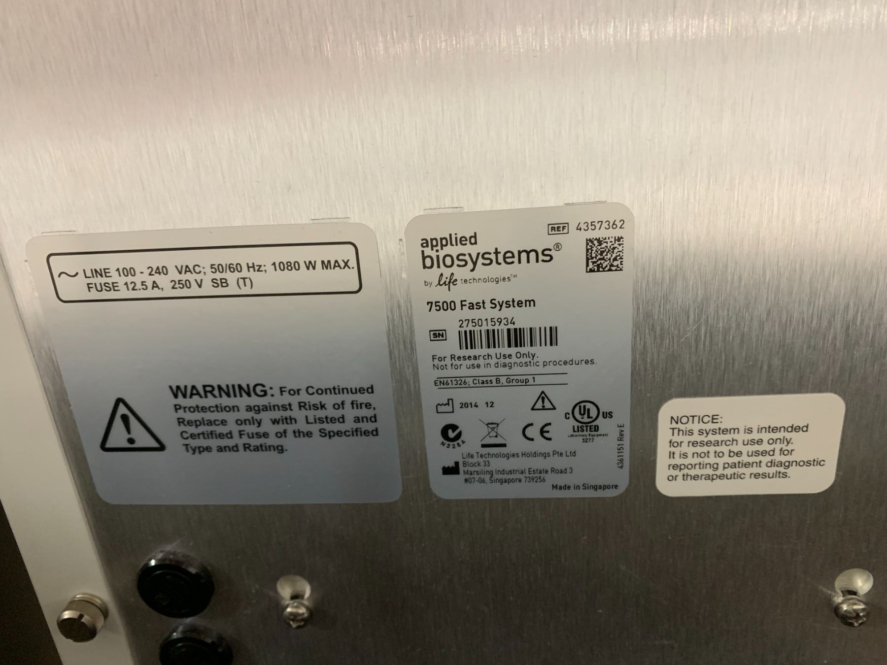 AB APPLIED BIOSYSTEMS 7500 FAST REAL-TIME COMMERCIAL LABORATORY PCR SYSTEM WITH POWER CABLE