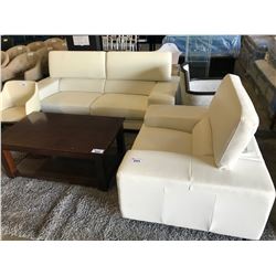 WHITE MODERN LEATHER 2 SEAT SOFA WITH OVERSIZE CHAIR