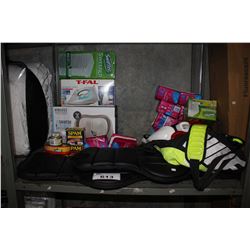 SHELF LOT INCLUDING HOMEDICS 3D SHIATSU & VIBRATION MASSAGER, BOXING GEAR, ASSORTED HOME PRODUCTS613 - SHELF LOT INCLUDING HOMEDICS 3D SHIATSU & VIBRATION MASSAGER, BOXING GEAR, ASSORTED HOME PRODUCTS