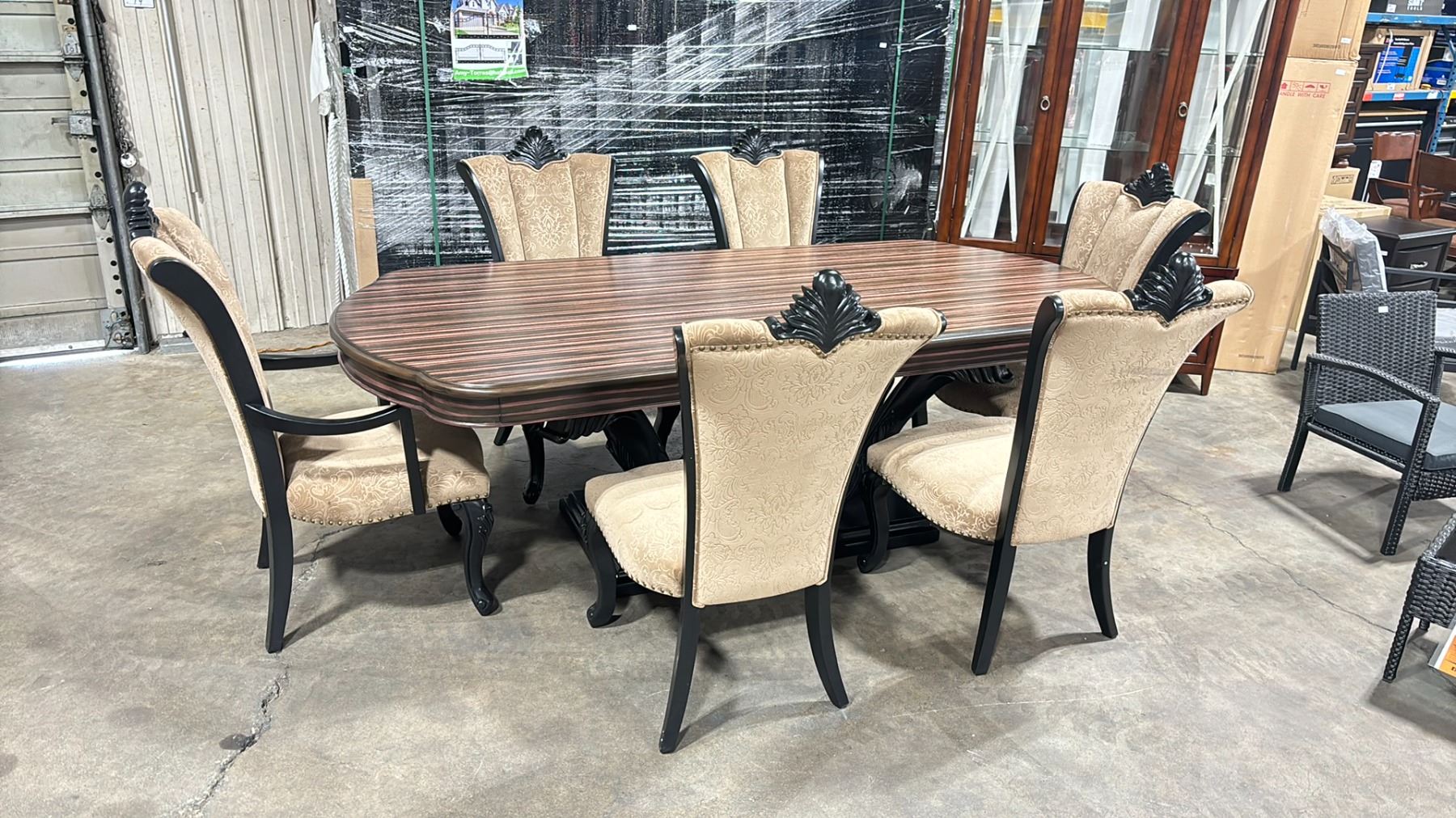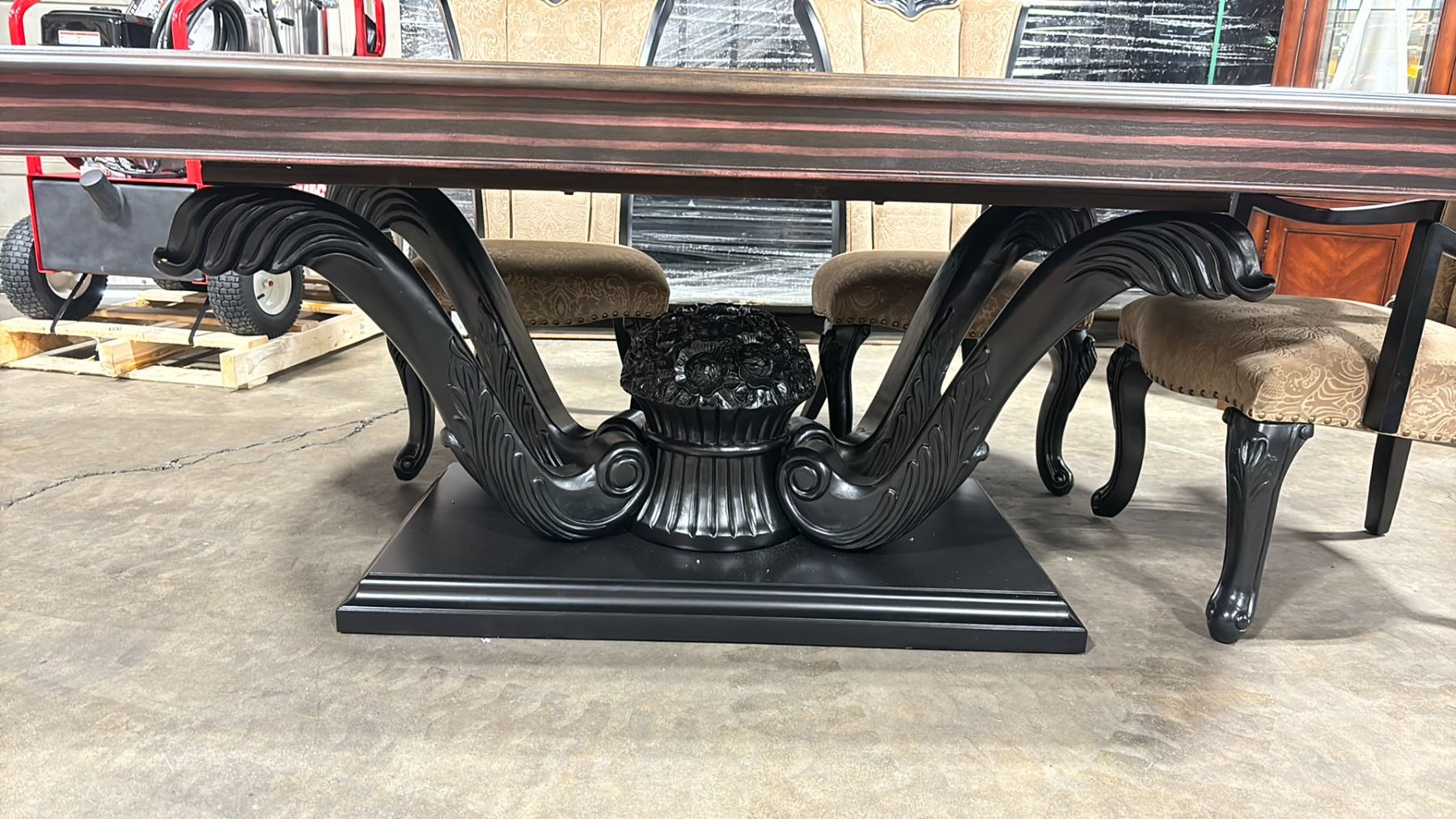 ABHI FURNITURE 7 PIECE CHERRY TOP DINING SET WITH 2 ARM CHAIRS & 4 SIDE CHAIRS BOX #1 TABLE TOP: 3079-TT BOX #2 TABLE BASE: 3079-TB BOX #3 ARM CHAIRS: 3079-A/C BOX #4 & BOX #5 SIDE CHAIRS: 3079-S/C * IN BOX/ 5 BOXES TOTAL * - APPROX. 8'L X 4'W * REQUIRES 2 PEOPLE FOR REMOVAL *