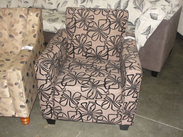 ACCENT CHAIR - BEIGE WITH BLACK FLORAL DESIGN