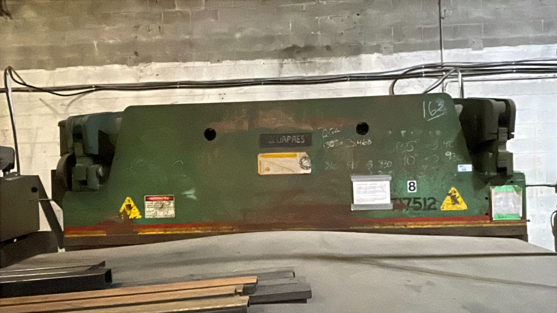 ACCURPRESS MODEL 717512 INDUSTRIAL STEEL BRAKE - 175 TON CAPACITY, BED LENGTH 12FT WITH RAM CONTROL PANEL **REMOVAL OF THIS MACHINE REQUIRES HIAB/CRANE**
