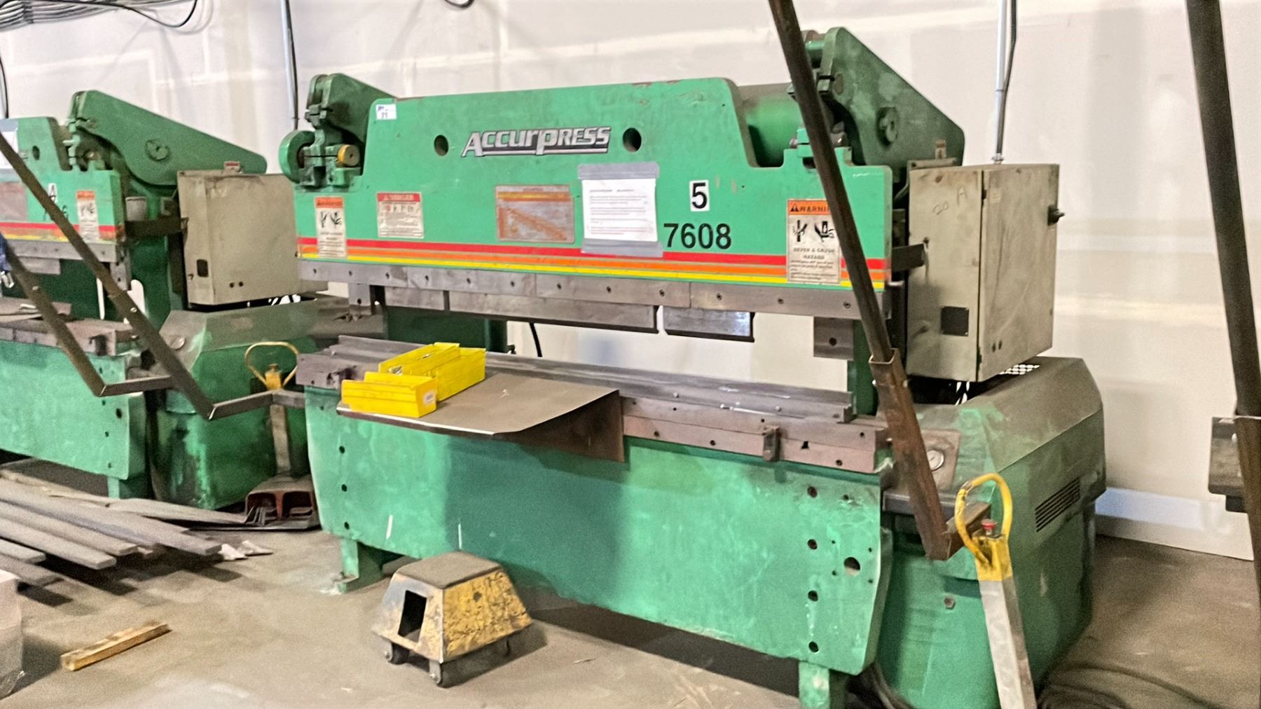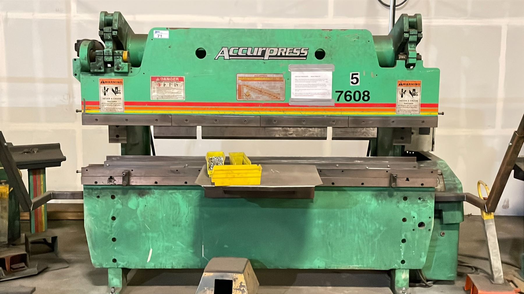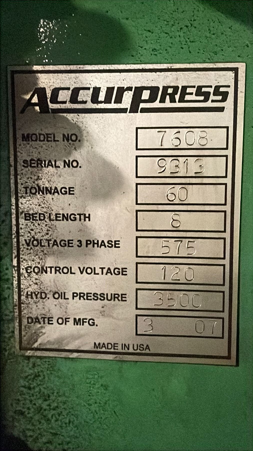 ACCURPRESS MODEL 7608 INDUSTRIAL STEEL BRAKE - 60 TON CAPACITY, BED LENGTH 8FT *WITH ETS CONTROLLER* **REMOVAL OF THIS MACHINE REQUIRES HIAB/CRANE LIFT** *FRI SEP 5 OR SAT SEP 6 REMOVAL