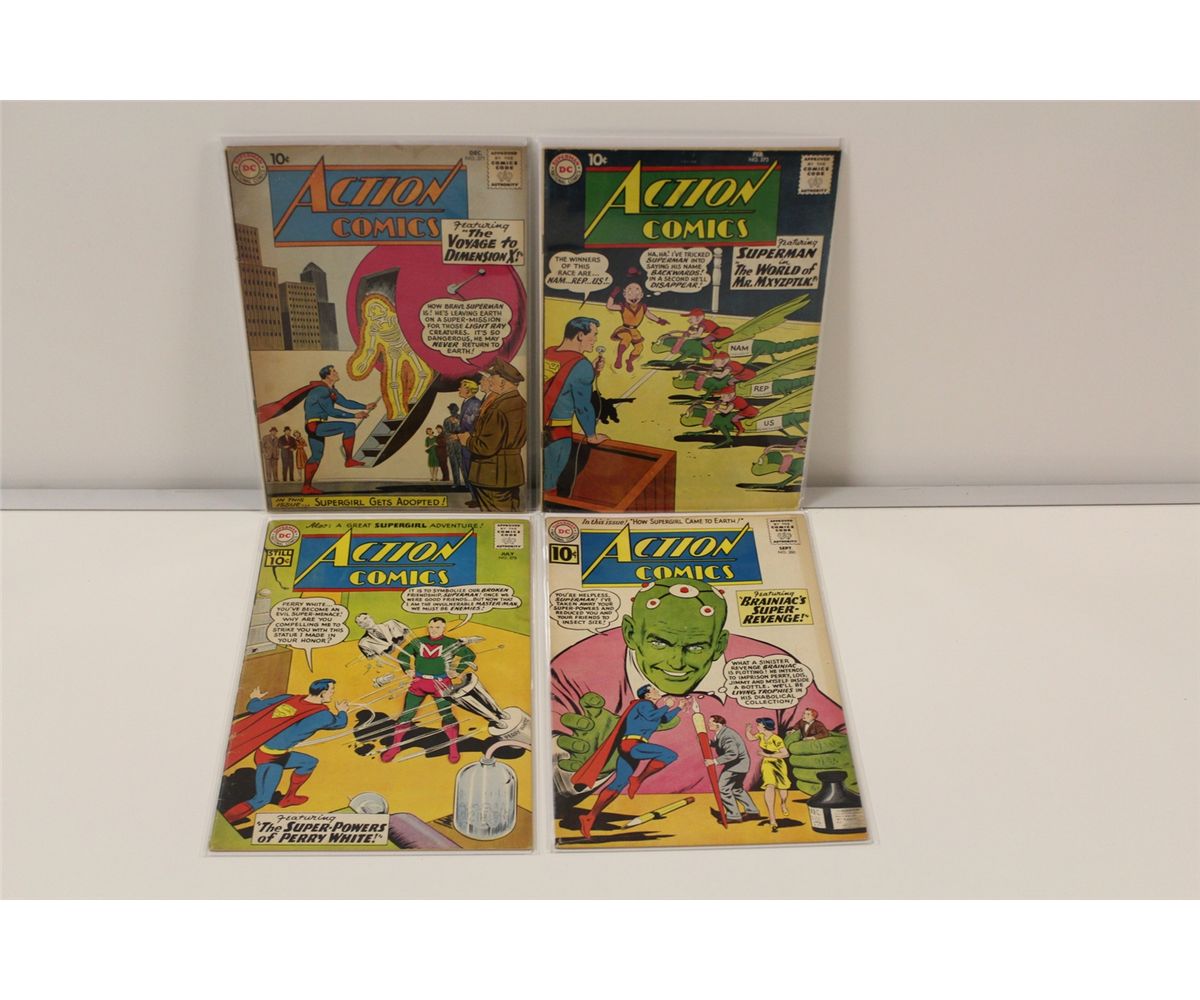 ACTION COMICS #271, 273, 278 & 280 (1960-61) ALL 4 COPIES ARE 10 CENT COVER, EARLY SILVER AGE EARLY SILVER AGE ISSUES. #280 - ORIGIN SUPERMAN & SUPERGIRL RETOLD. LOWER MID TO SOLID MID GRADE AVERAGE, GLOSSY TIGHT & SUPPLE, NICE BOOKS