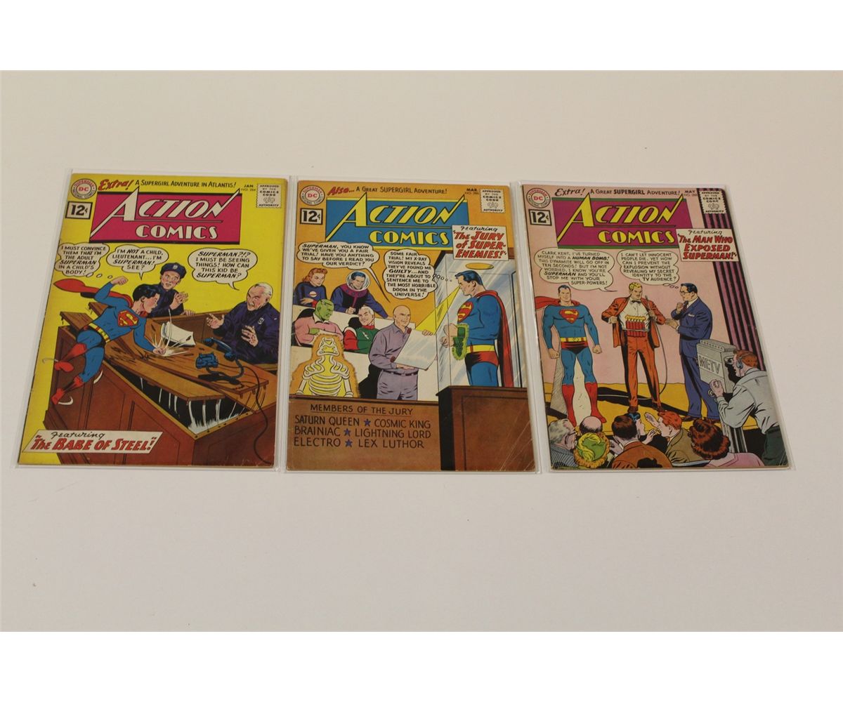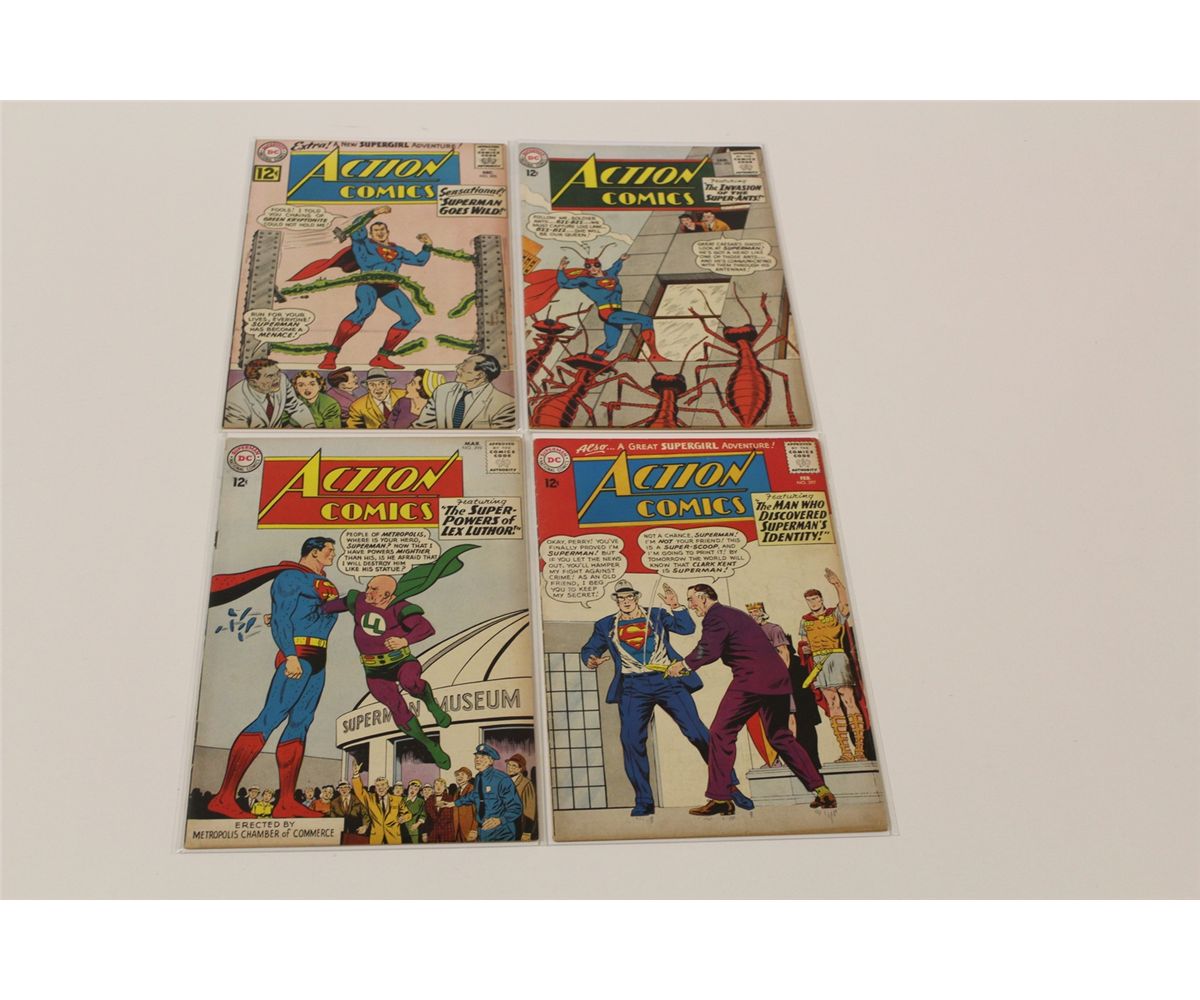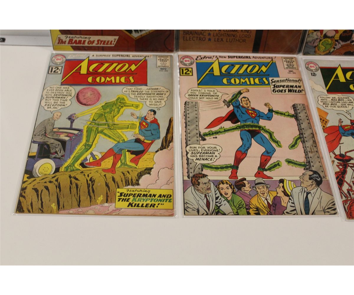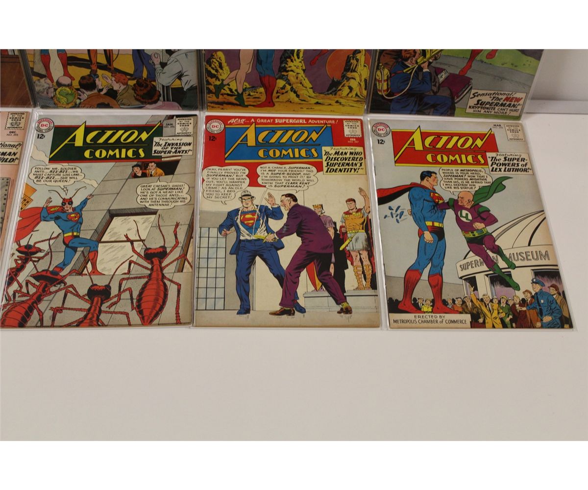 ACTION COMICS #284-298 (1962-63) NEAR COMPLETE RUN OF 10 DIFFERENT EARLY SILVER AGE ISSUES. INCLUDES #284, 286, 288-289, 291 & 294-298. SHARP MID GRADE AVERAGE, GLOSSY, TIGHT & SUPPLE, VERY NICE RUN!