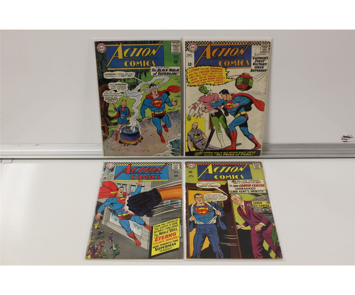 ACTION COMICS #324, 335, 343, 345 (1965-67) LOWER MID TO MID GRADE AVERAGE.  NICE & SOLID SILVER AGE BOOKS.