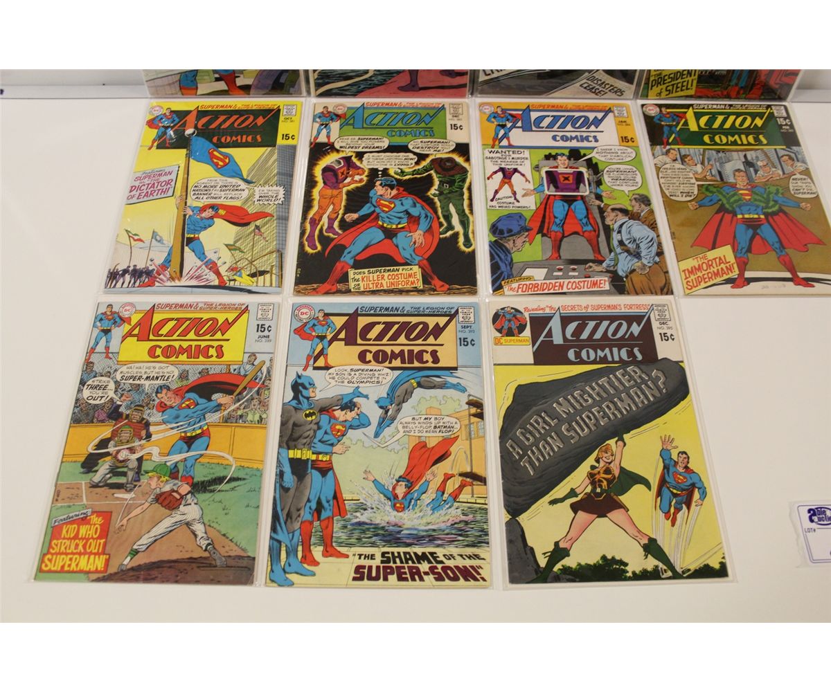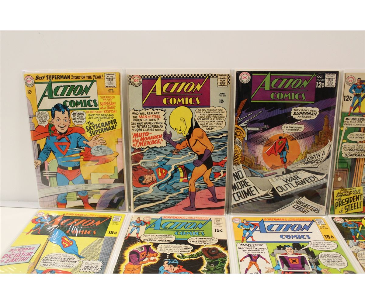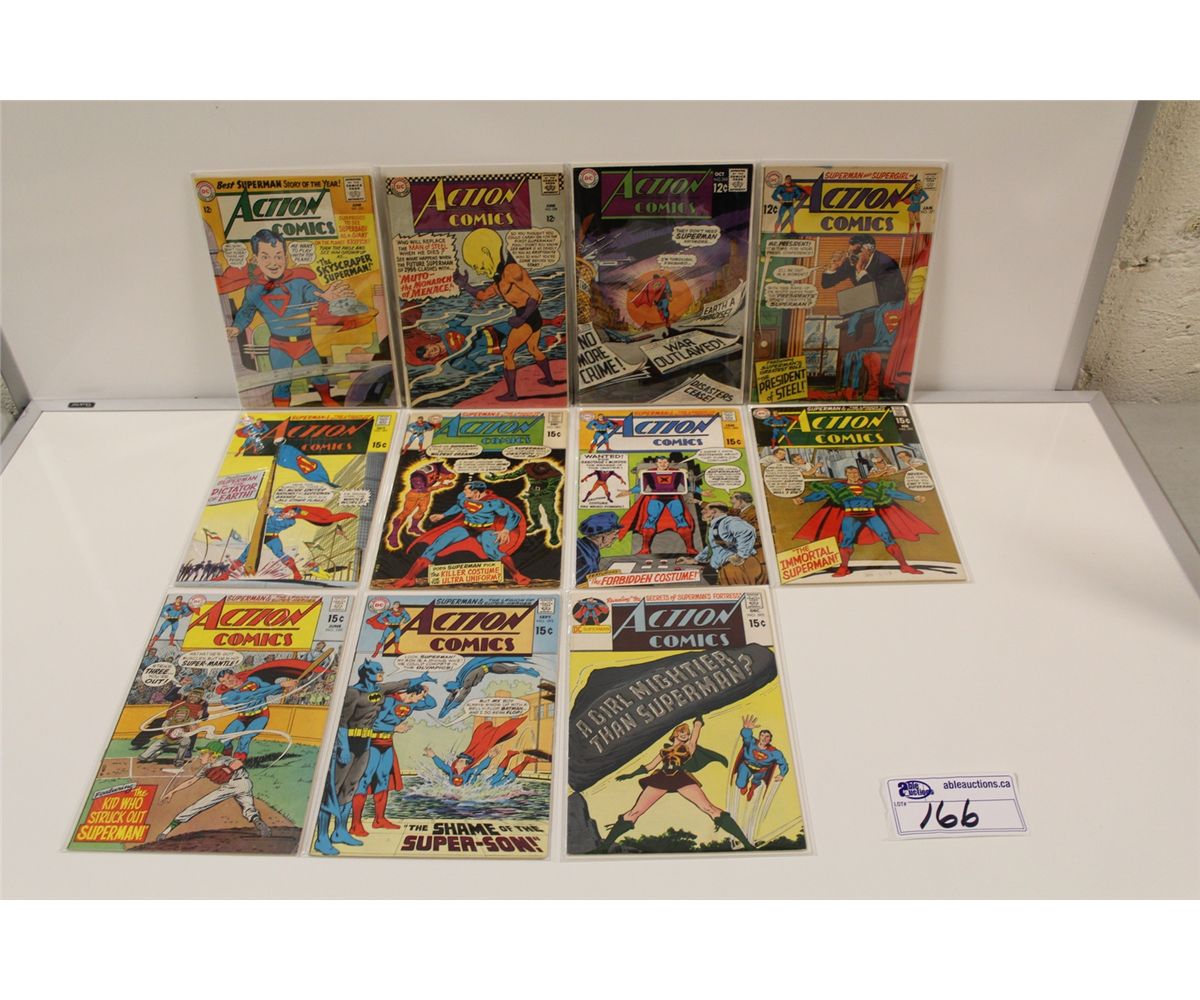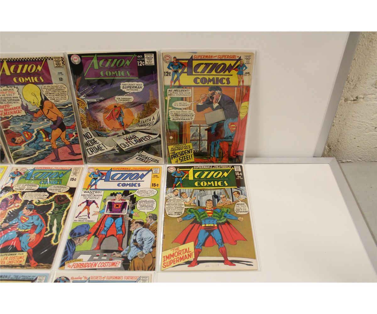 ACTION COMICS #325-395 (1965-70) INCLUDES 4 -12 CENT COVERS AND 7- 15 CENT COVERS. 11 BOOKS TOTAL IN SOLID MID GRADE AVERAGE. INCLUDES #325, 338, 368, 371, 381, 383-385, 389, 392 & 395