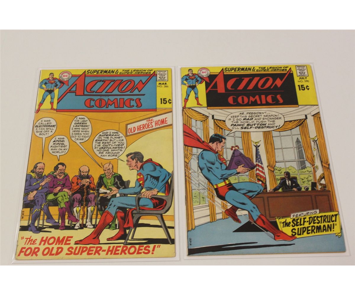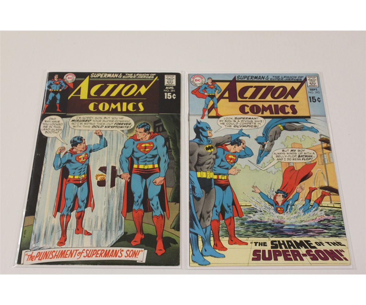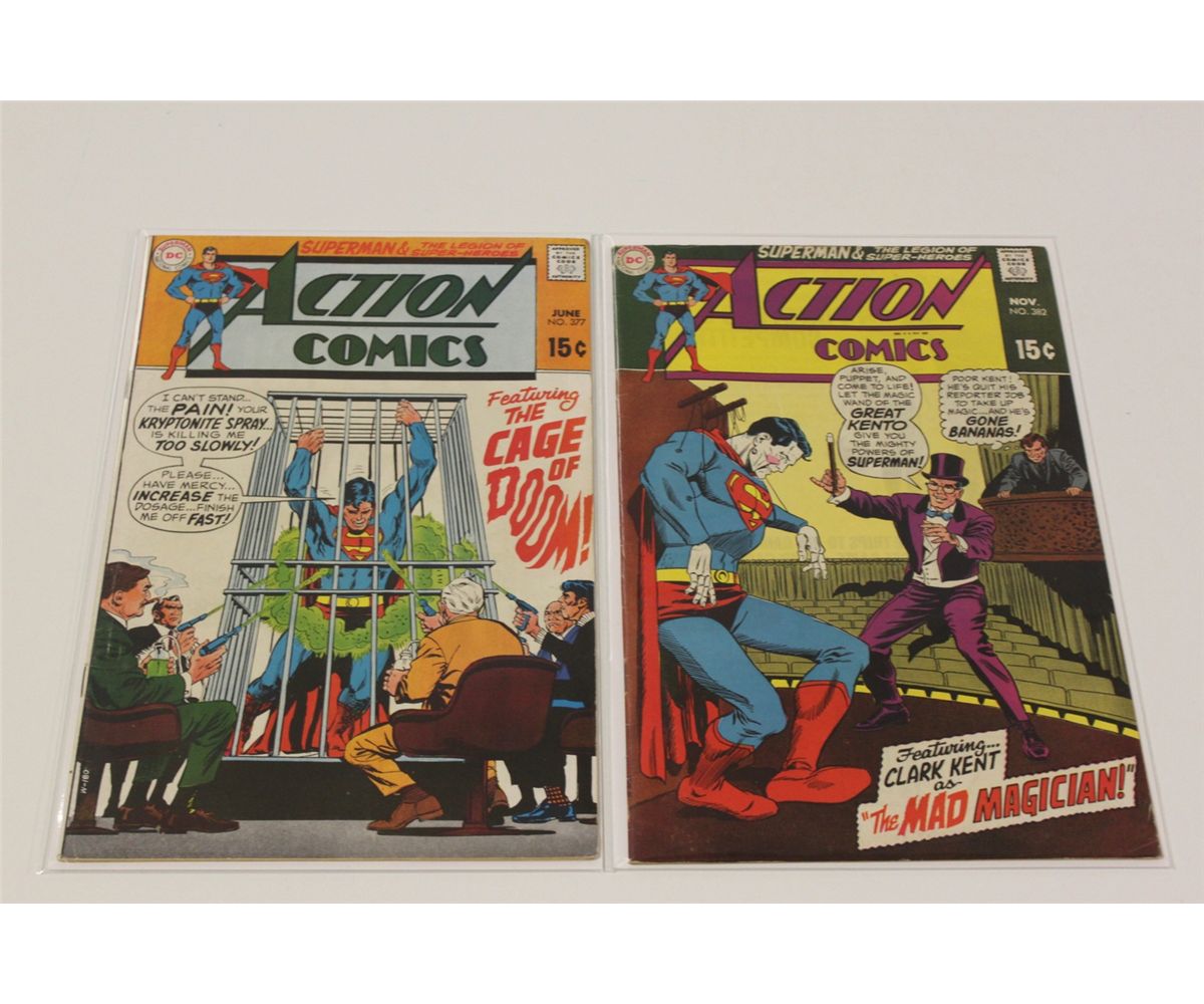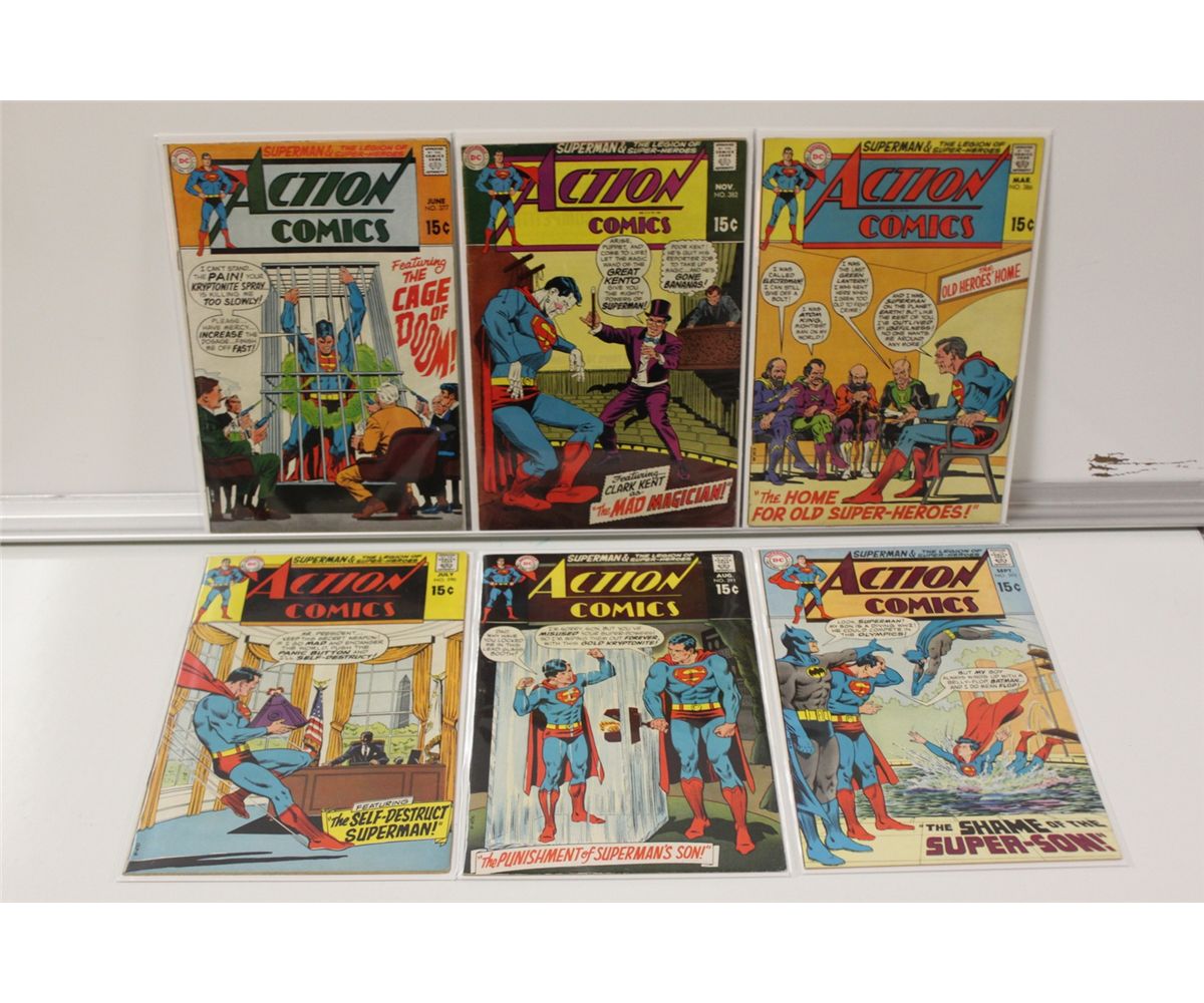 ACTION COMICS 6 ISSUE SILVER/BRONZE LOT #377, 382,386, 390, 391 & 392 (1969-70) MID TO HIGH MID GRADE AVERAGE.  NICE, SOLID & SHARP LOT.