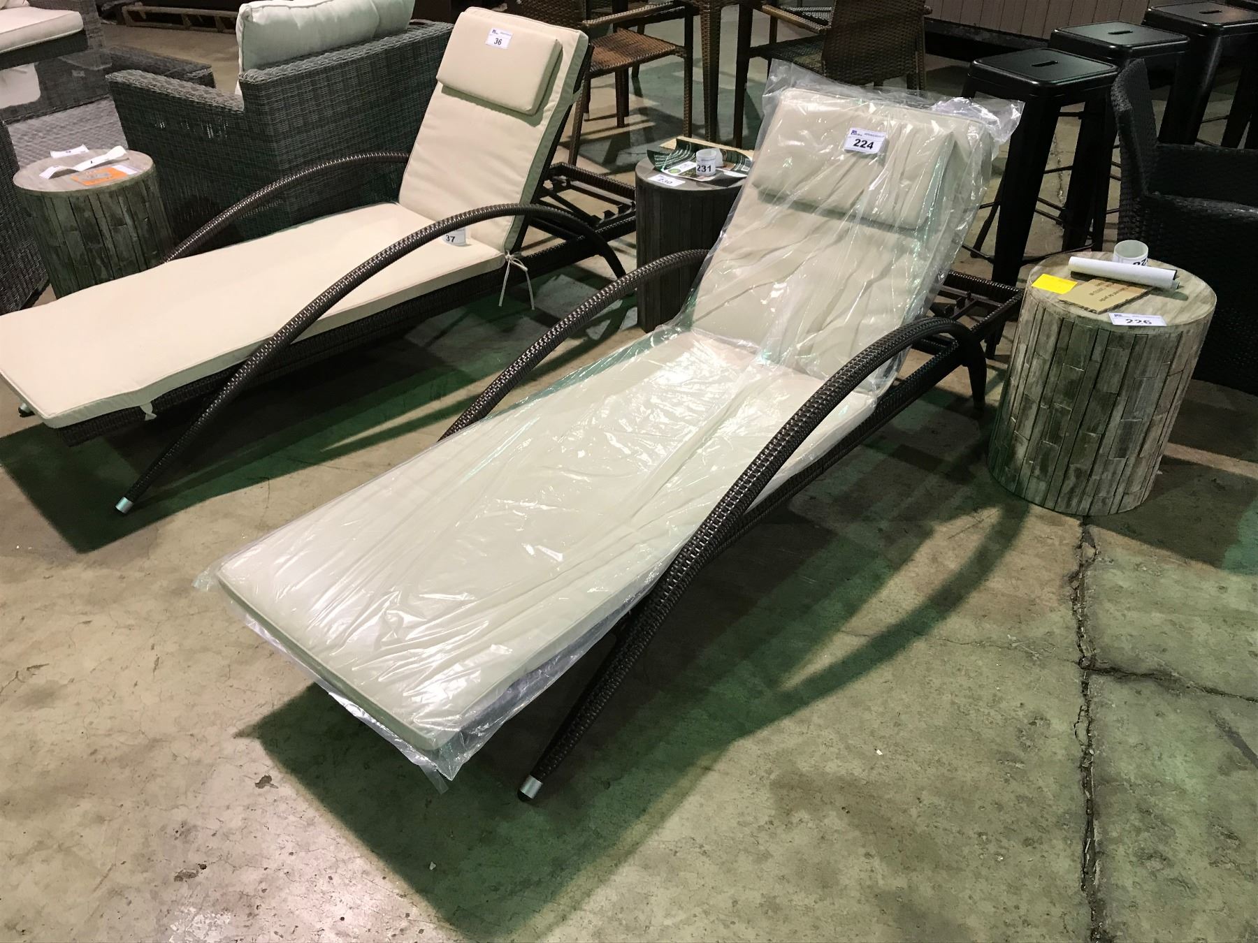 ADJUSTABLE MOCHA BROWN PATIO LOUNGE CHAIR WITH CUSHION
