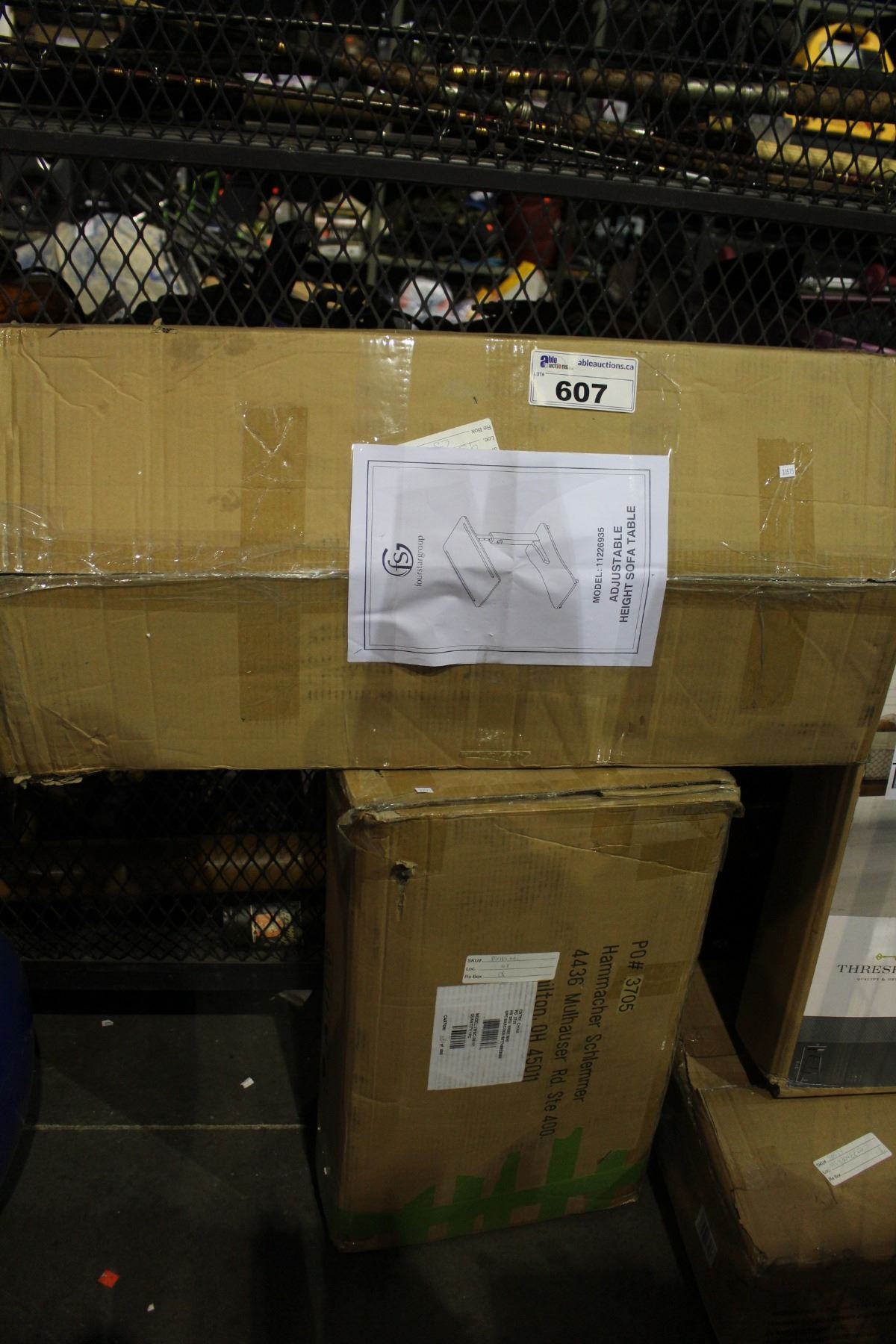 ADJUSTABLE SOFA TABLE AND BOX OF UNASSEMBLED FURNITURE