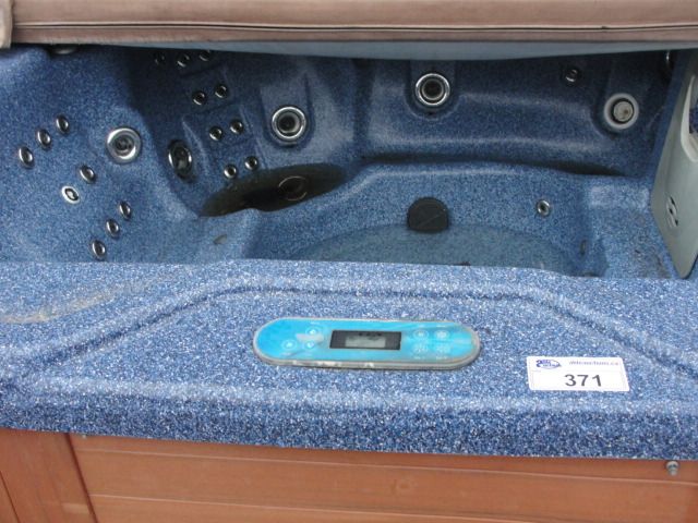 AEWARE HOT TUB WITH COVER FAUX WOOD SURROUND WITH GRANITE BLUE TUB LINER