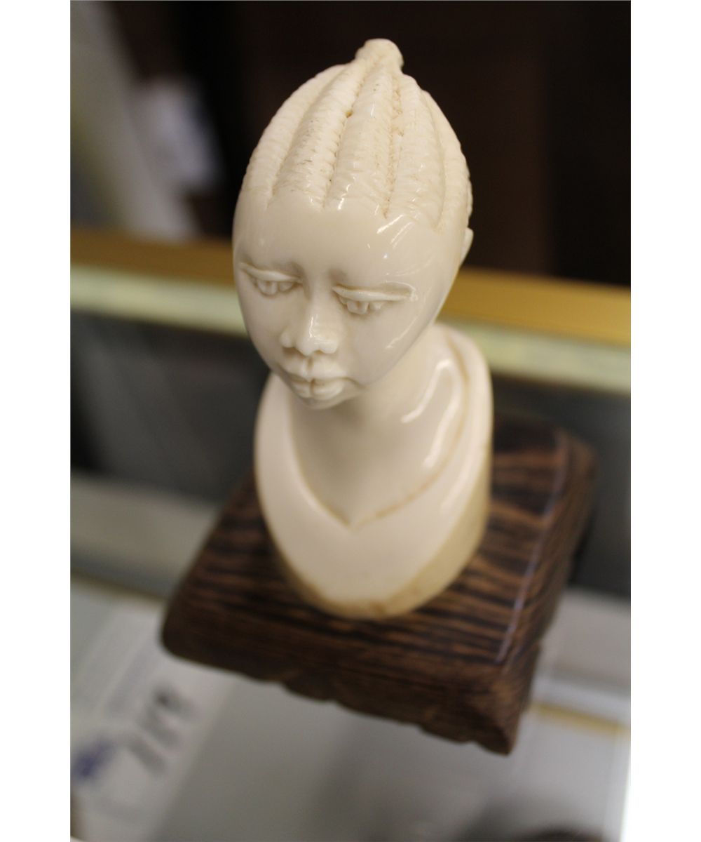 AFRICAN CARVED IVORY BUST 4" HIGH ON WOODEN BASE