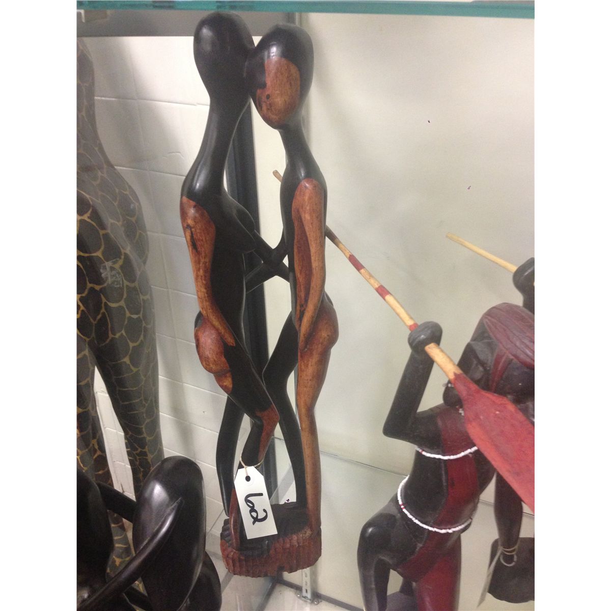 AFRICAN EBONY HAND CARVED FROM ONE PIECE, "COUPLE" 25" TALL