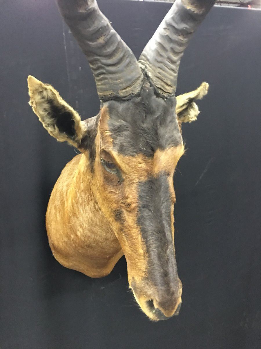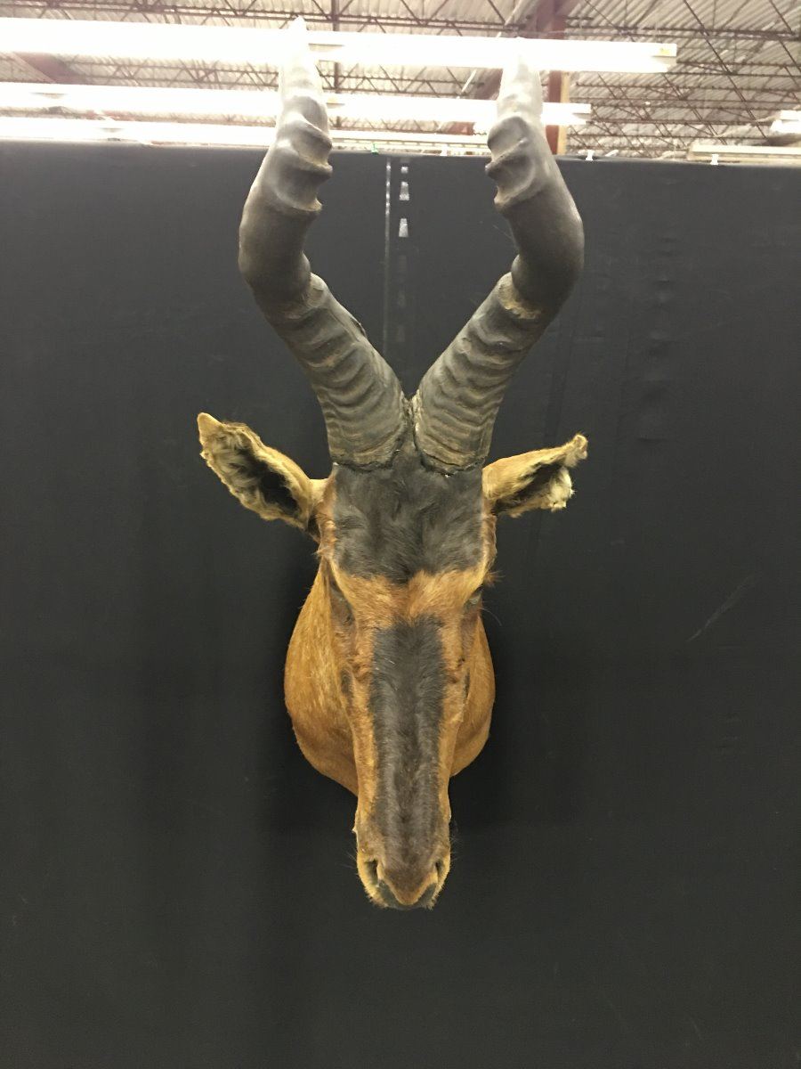 AFRICAN HARTEBEEST HEAD AND HORN MOUNT MOUNT MEASURES: 31" FROM TIP OF HORN TO NOSE