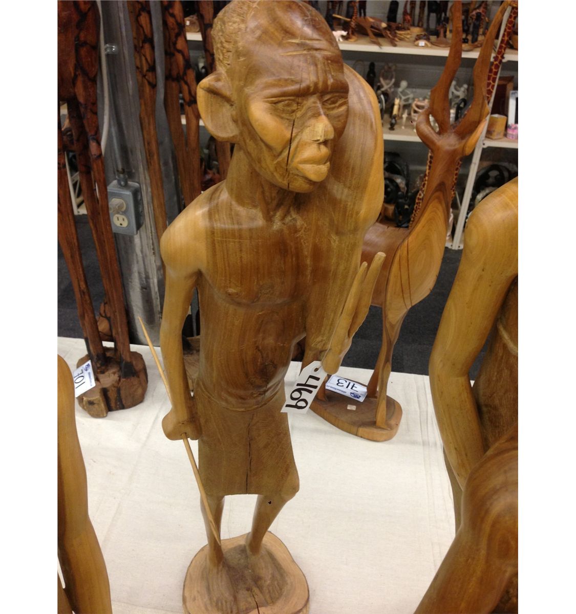 AFRICAN HUNTER, WOOD CARVING, 37" TALL