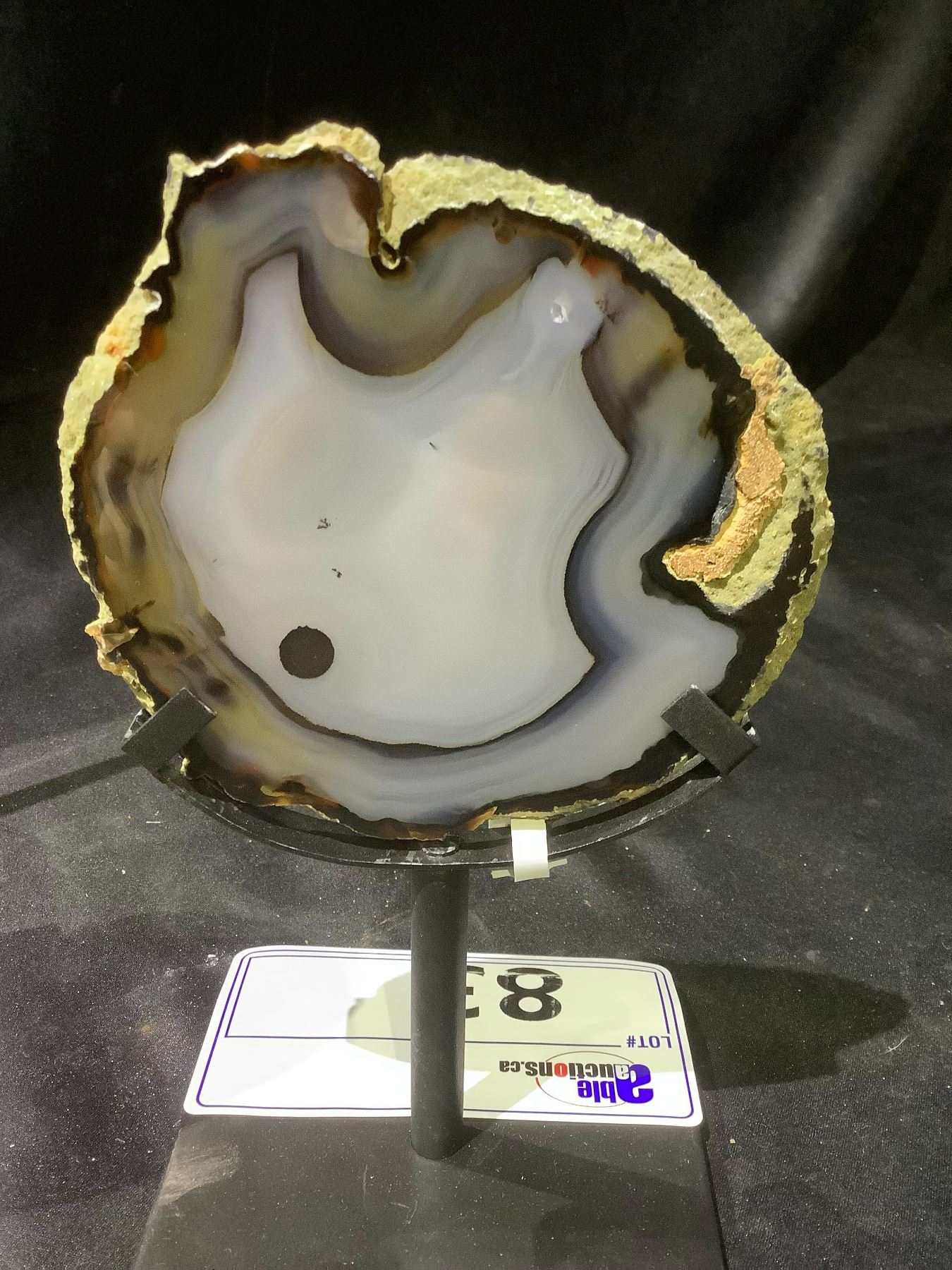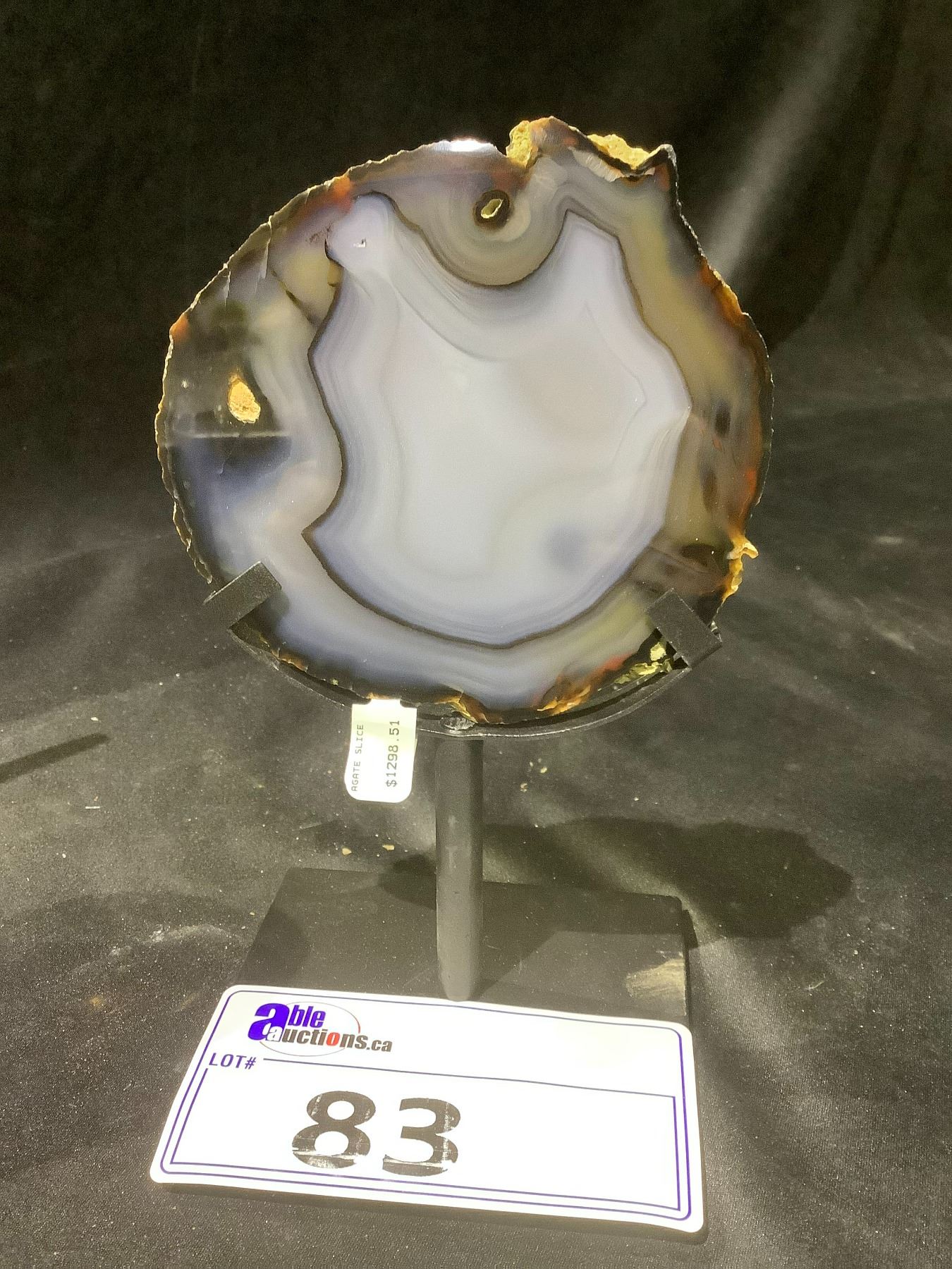 AGATE SLICE ON METAL STAND APPROX 4-1/2X4" RETAIL $1298.51