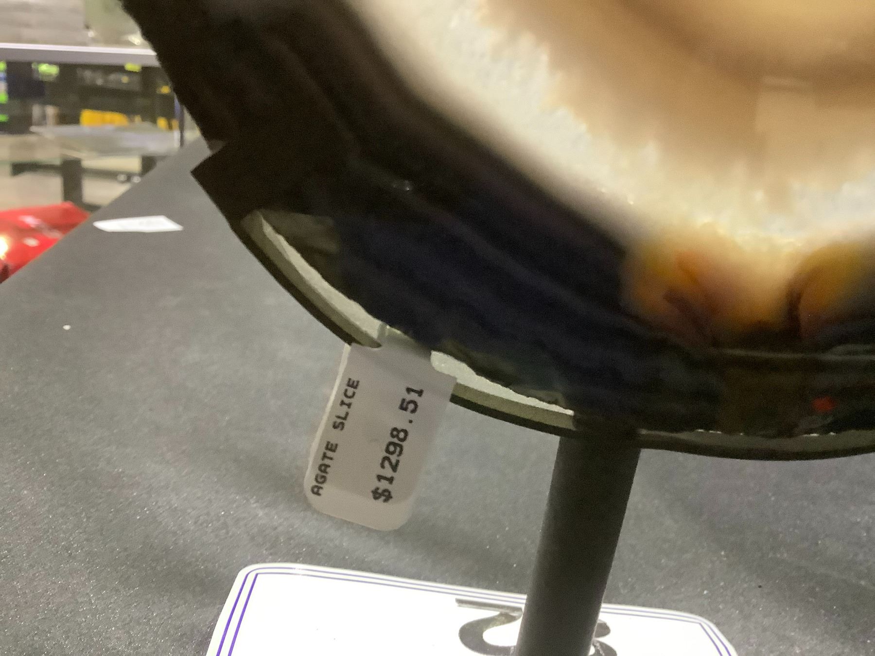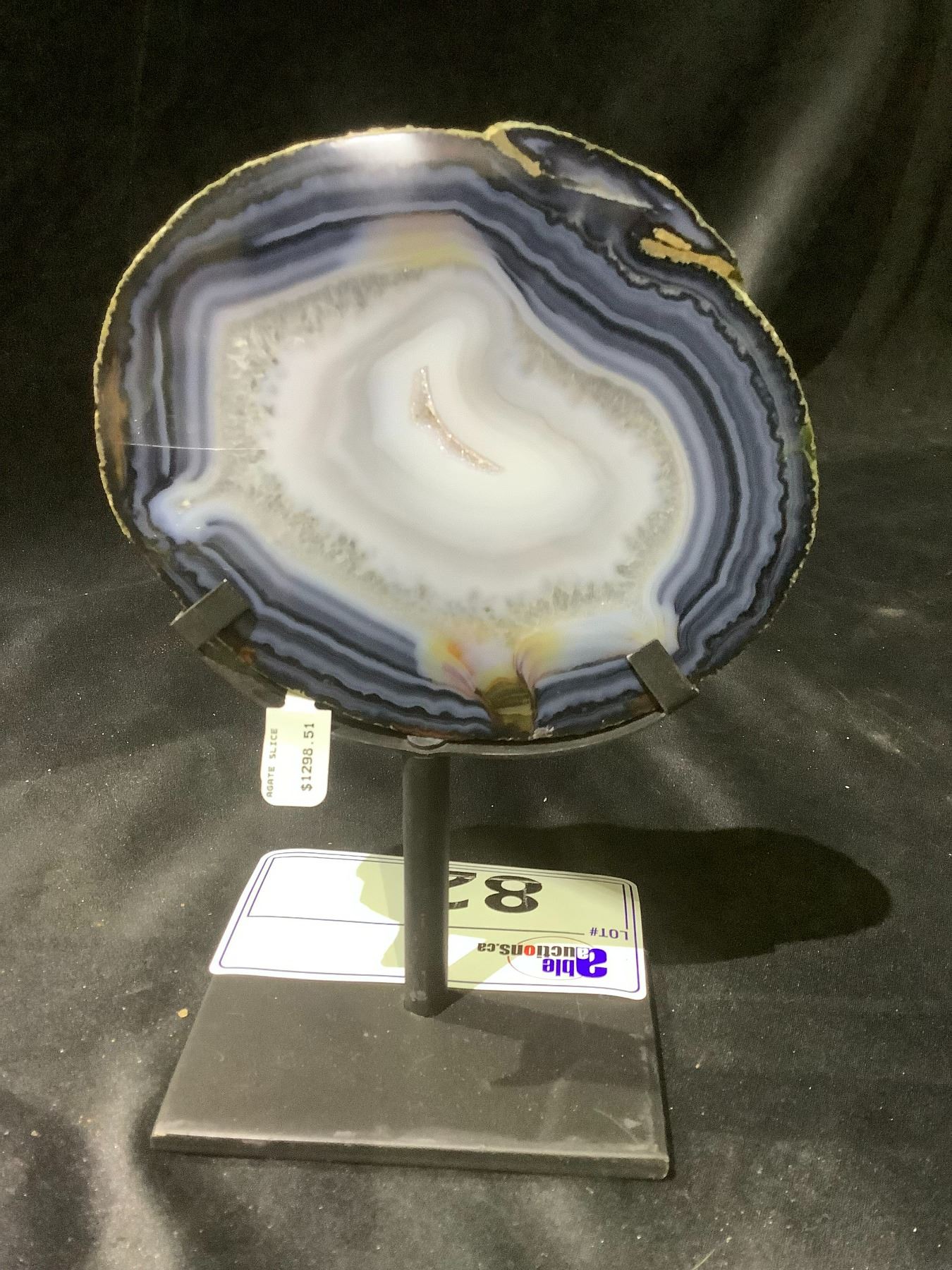 AGATE SLICE ON METAL STAND APPROX 5X4-1/2" RETAIL $1298.51