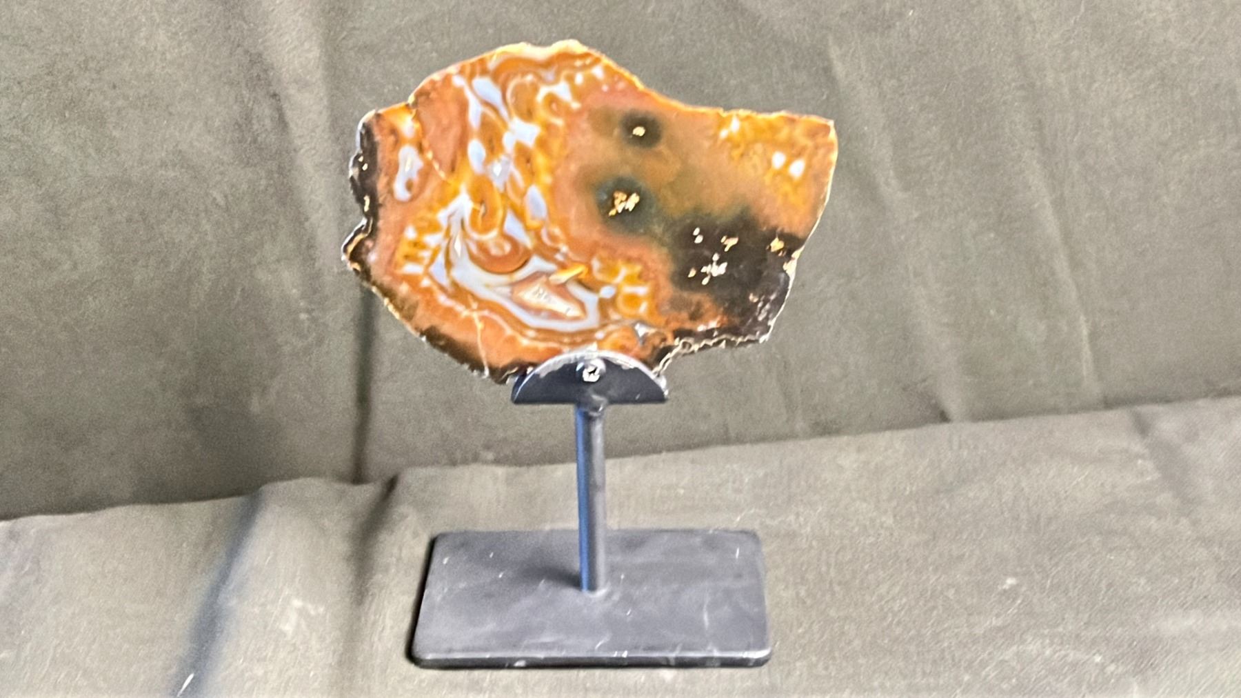 AGATE SLICE ON METAL STAND RETAIL $1100