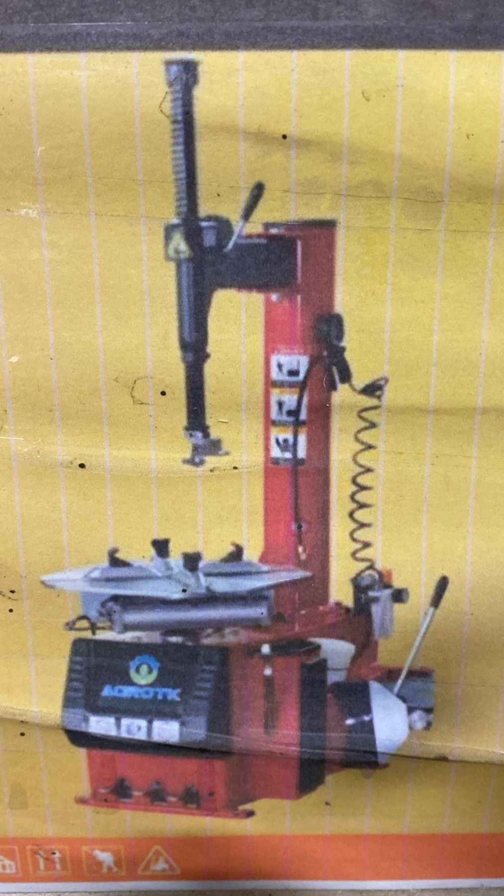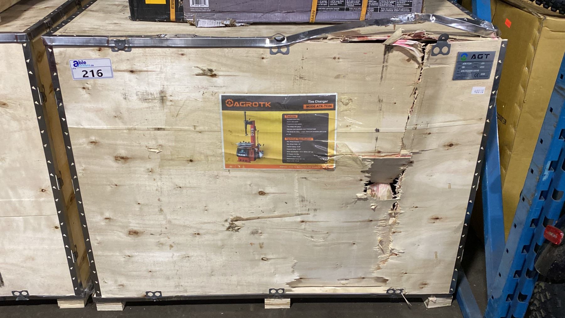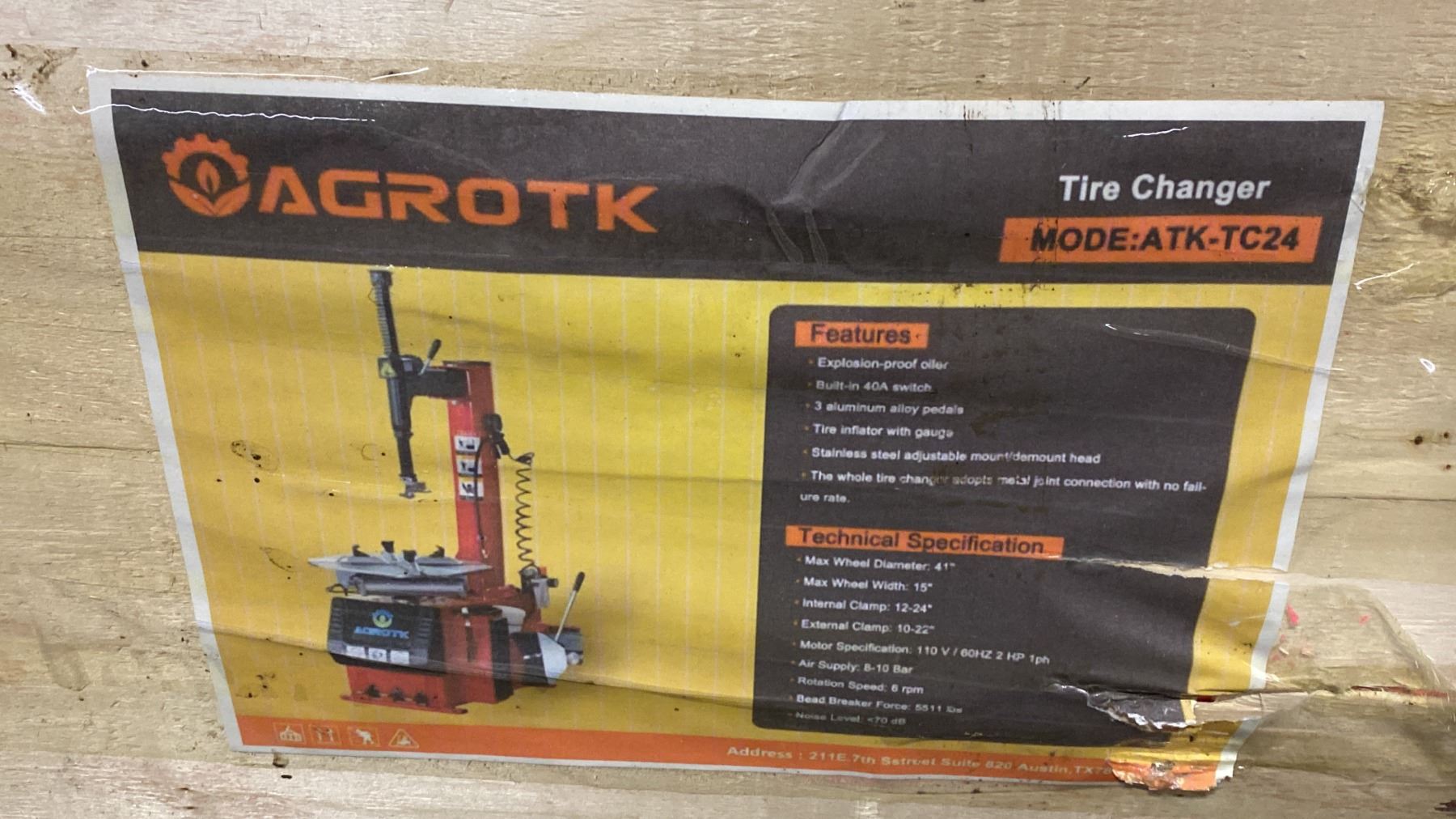 AGROTK ATK-TC24 RED 41" DIAMETER X 15"W 5511 LBS CAPACITY INDUSTRIAL TIRE CHANGER *IN CRATE* CRATE MEASURES APPROX 44"L X 34"D X 35"H, UNIT WEIGHS APPROX 455LBS *WOODEN CRATE HAS DAMAGE* *LAST DAY REMOVAL*
