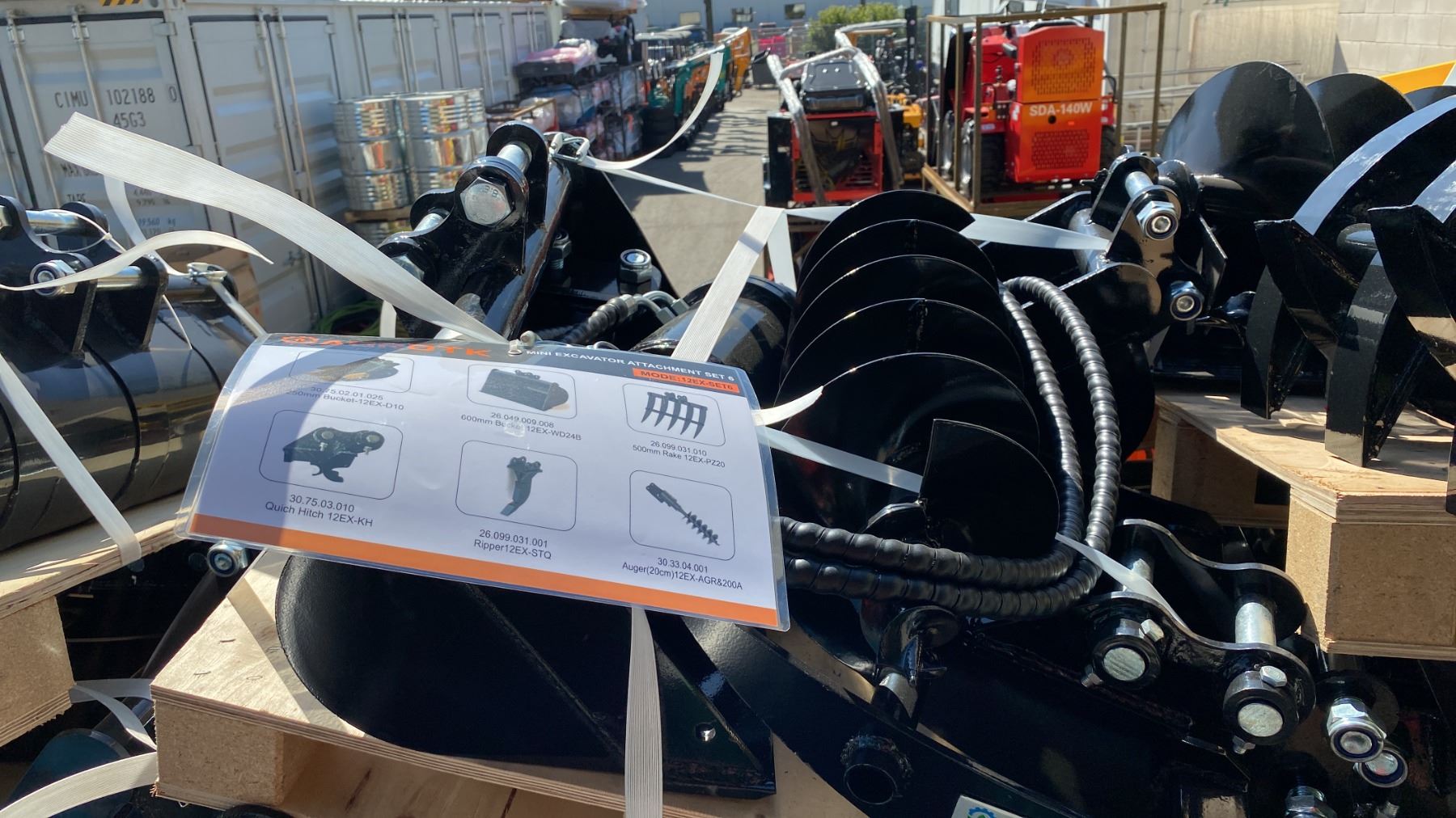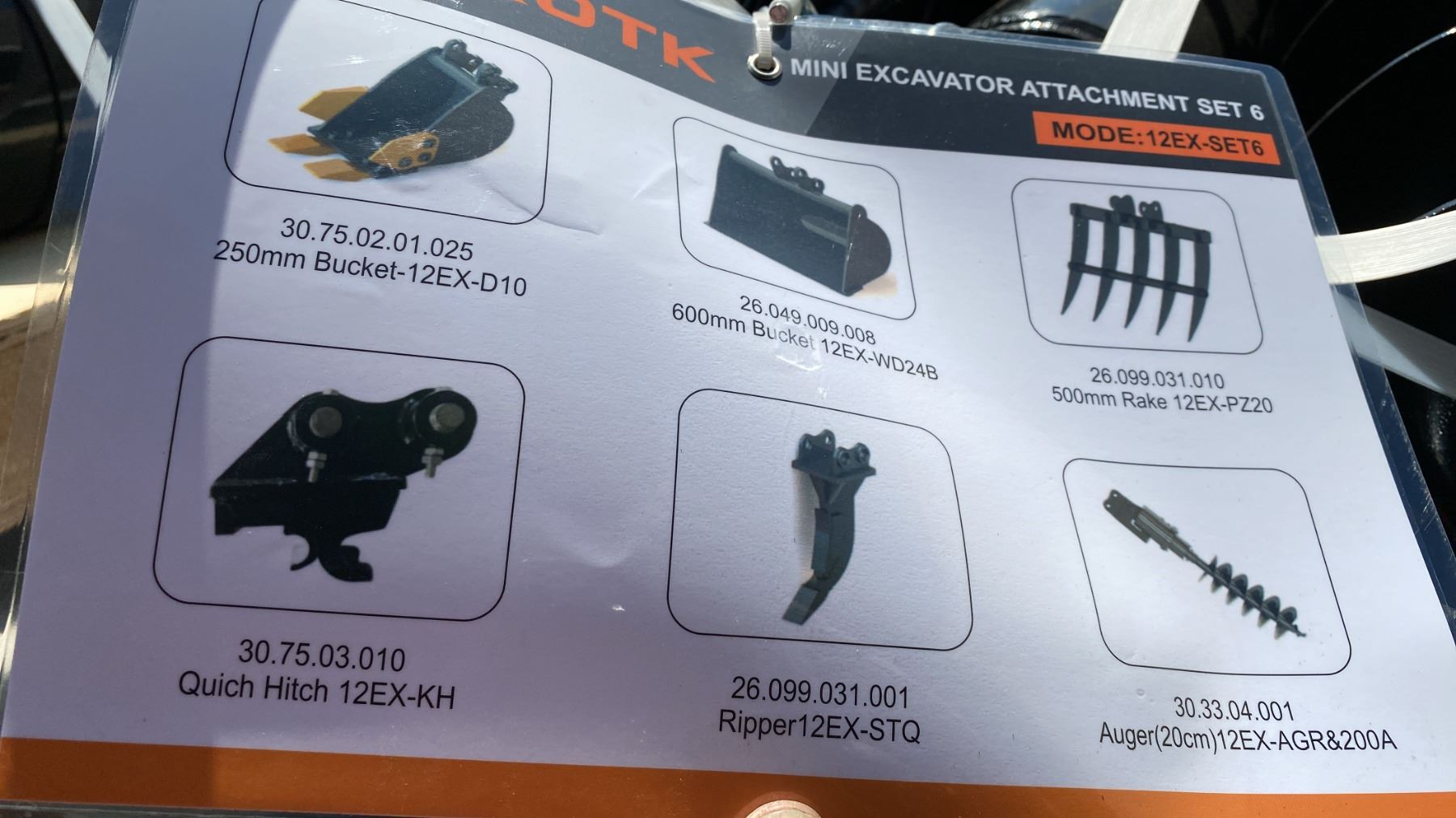 AGT 12EX-SET6 MINI EXCAVATOR ATTACHMENT SET- 10" DIGGING BUCKET, 24" CLEANUP BUCKET, QUICK COUPLER, RIPPER, RAKE & AUGER WITH 8" BIT