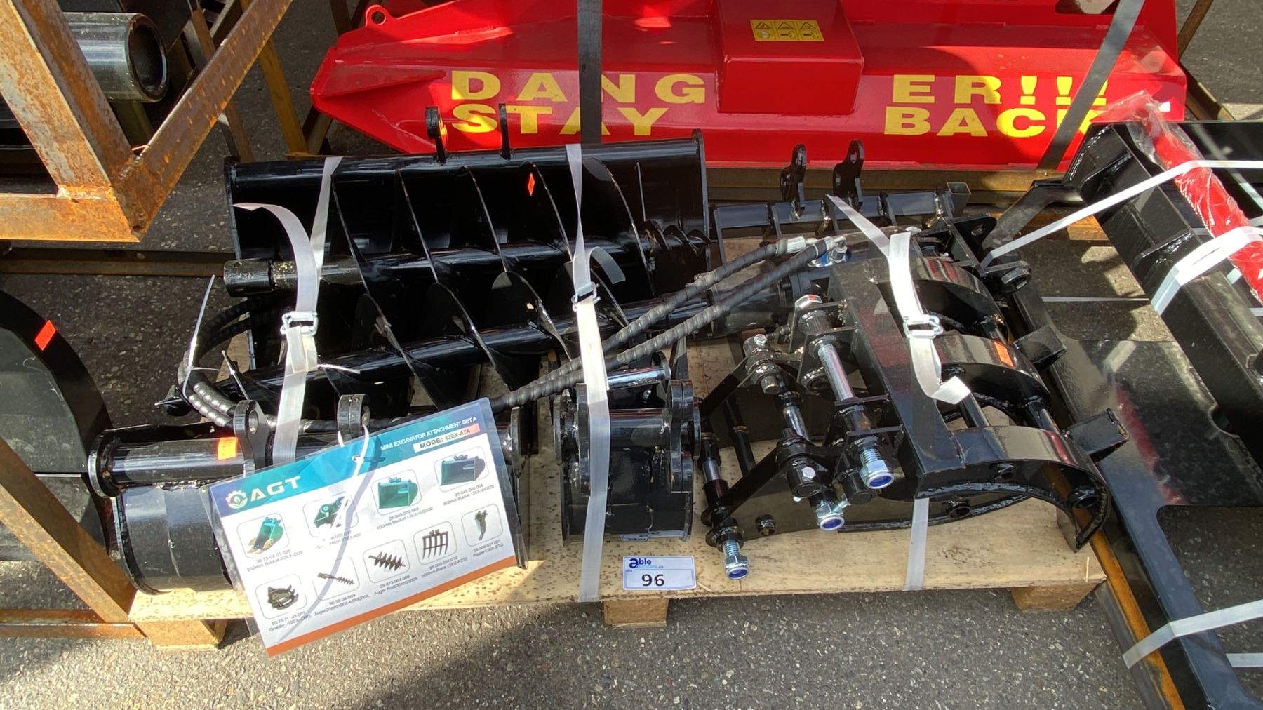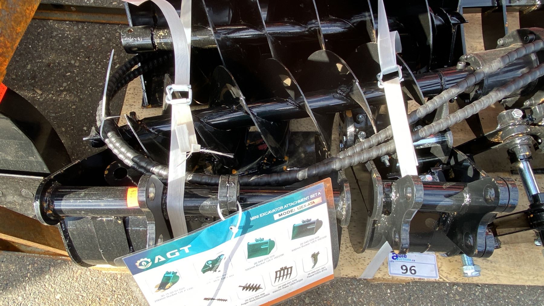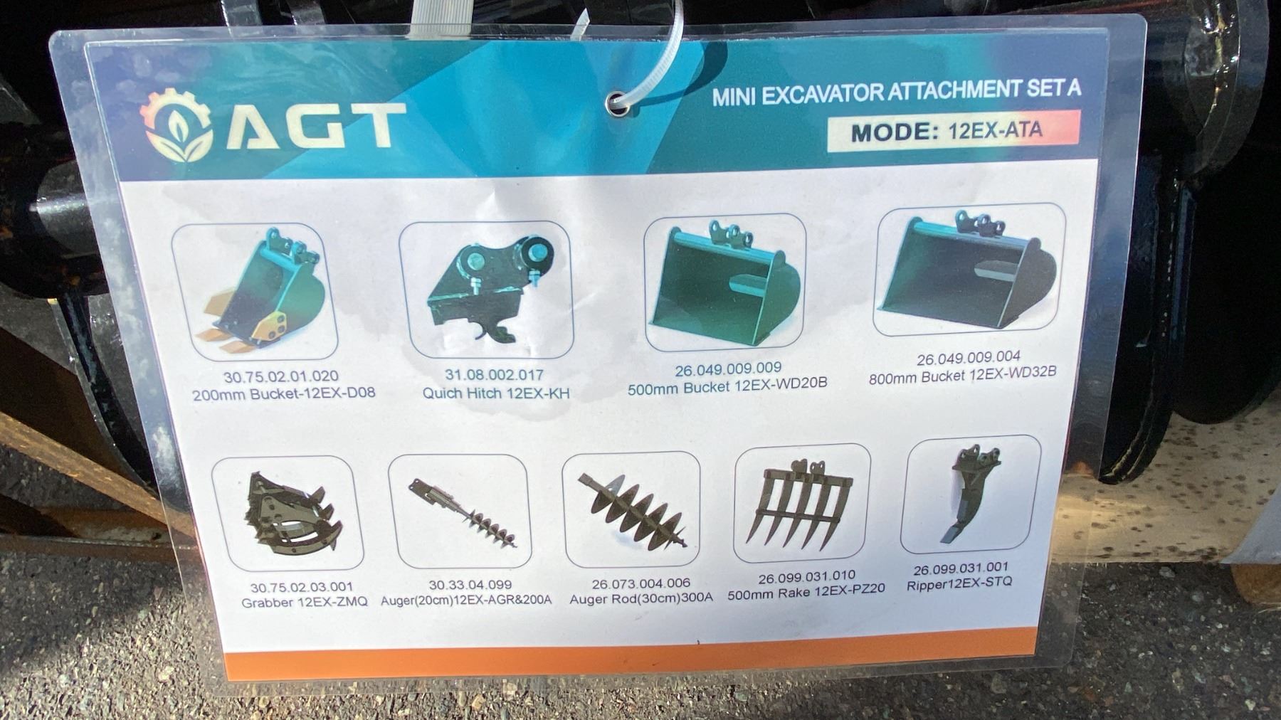 AGT INDUSTRIAL 9PCS MINI EXCAVATOR ATTACHMENT SET 12EX-ATA INCLUDES A QUICK COUPLER, RIPPER, RAKE, GRABBER (GRAPPLE), AUGER WITH RODS, AND THREE BUCKET SIZES 8", 20", 32"