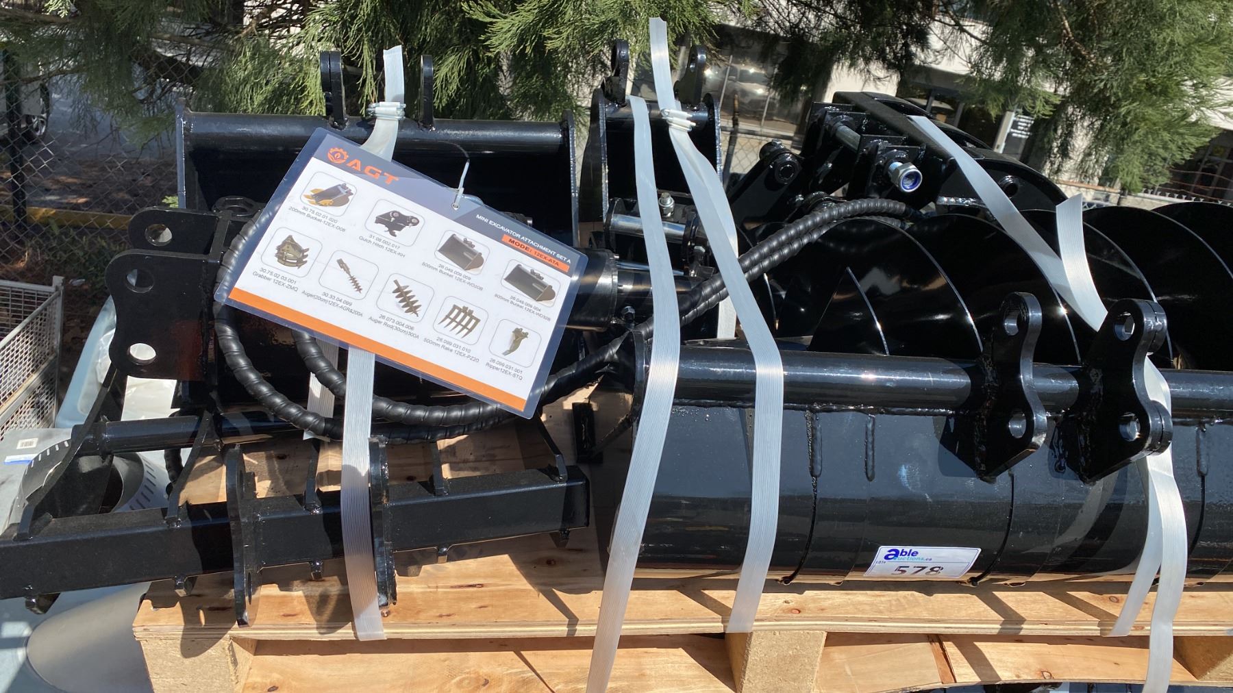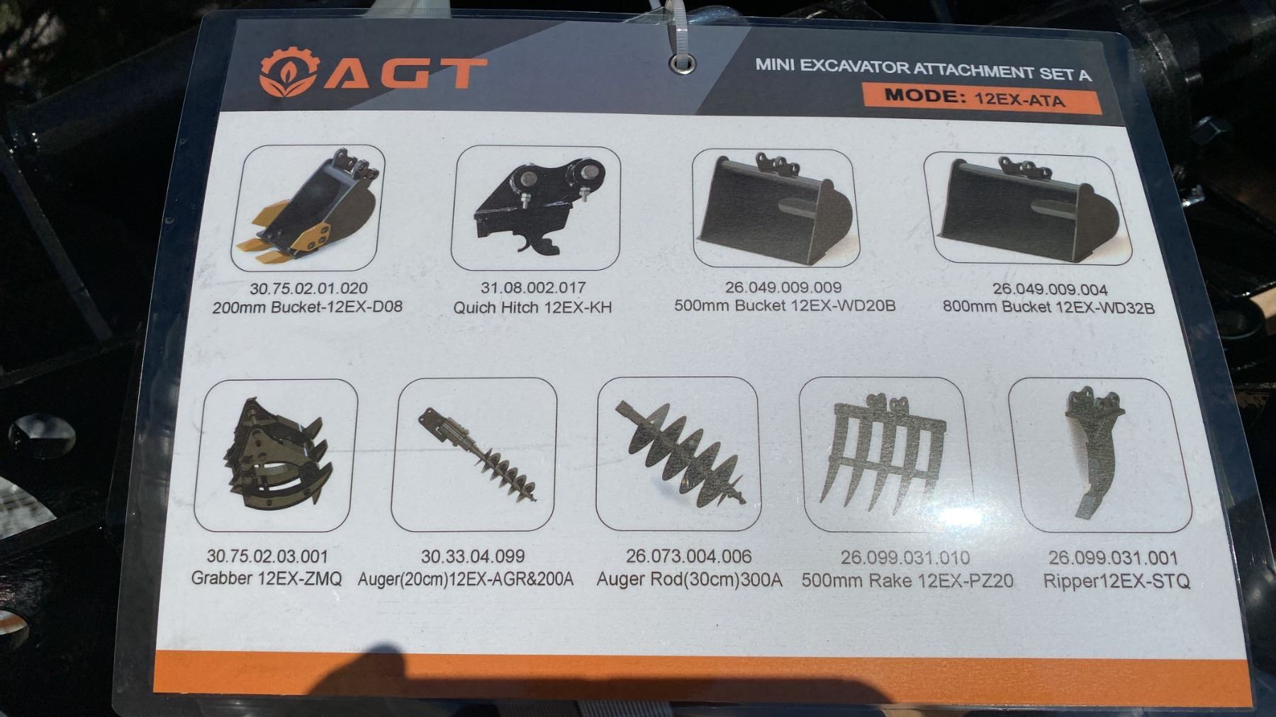 AGT INDUSTRIAL 9PCS MINI EXCAVATOR ATTACHMENT SET 12EX-ATA INCLUDES A QUICK COUPLER, RIPPER, RAKE, GRABBER (GRAPPLE), AUGER WITH RODS, AND THREE BUCKET SIZES 8", 20", 32"