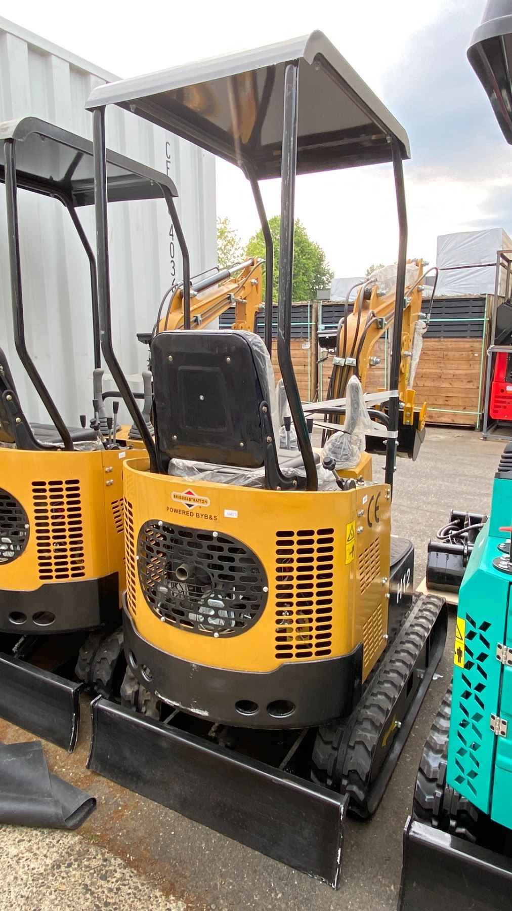 AGT INDUSTRIAL H12 YELLOW GAS POWERED RUBBER TRACK MINI EXCAVATOR WITH ATTACHED DIGGING BUCKET, GRADER BLADE, MINI TOOL KIT & KEYS *MEETS CANADIAN EMISSIONS CONTROL REGULATIONS*