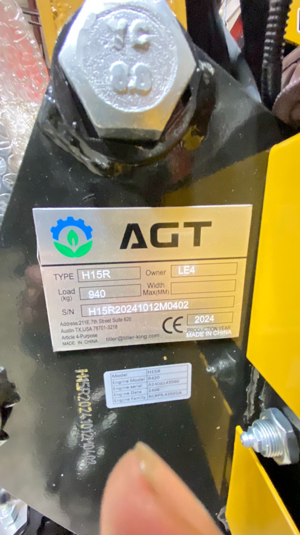 AGT INDUSTRIAL H15R 2024 YELLOW 13.5 HP GAS POWERED RUBBER TRACK MINI EXCAVATOR WITH ATTACHED DIGGING BUCKET, GRADER BLADE, MINI TOOL KIT & KEYS *MEETS CANADIAN EMISSIONS CONTROL REGULATIONS*