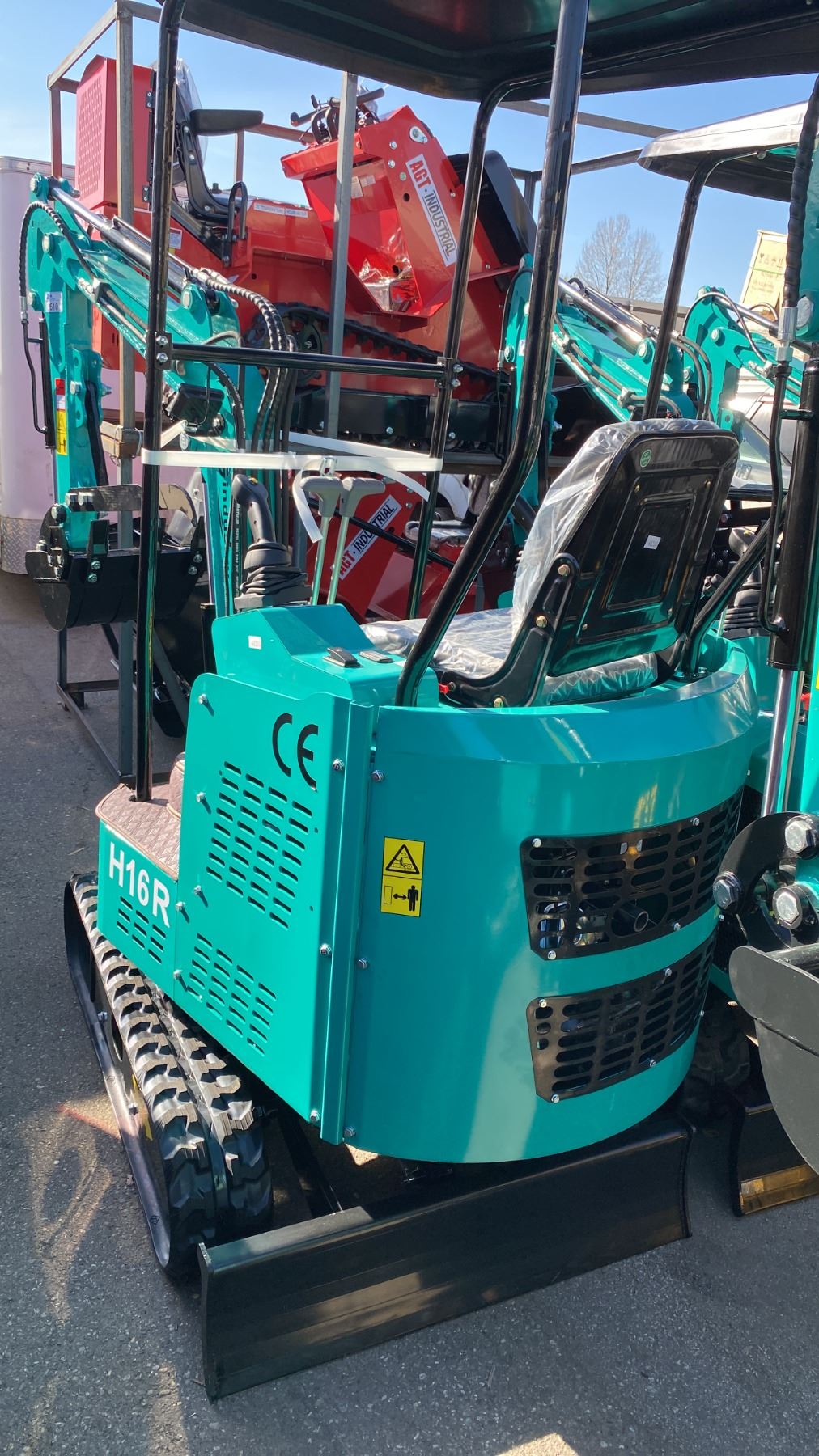 AGT INDUSTRIAL H16R TEAL GAS POWERED 13.5HP RUBBER TRACK MINI EXCAVATOR WITH ATTACHED DIGGING BUCKET, GRADER BLADE, MINI TOOL KIT & KEYS *MEETS CANADIAN EMISSIONS CONTROL REGULATIONS* *MUST HAVE PROPER EQUIPMENT TO TRANSPORT*