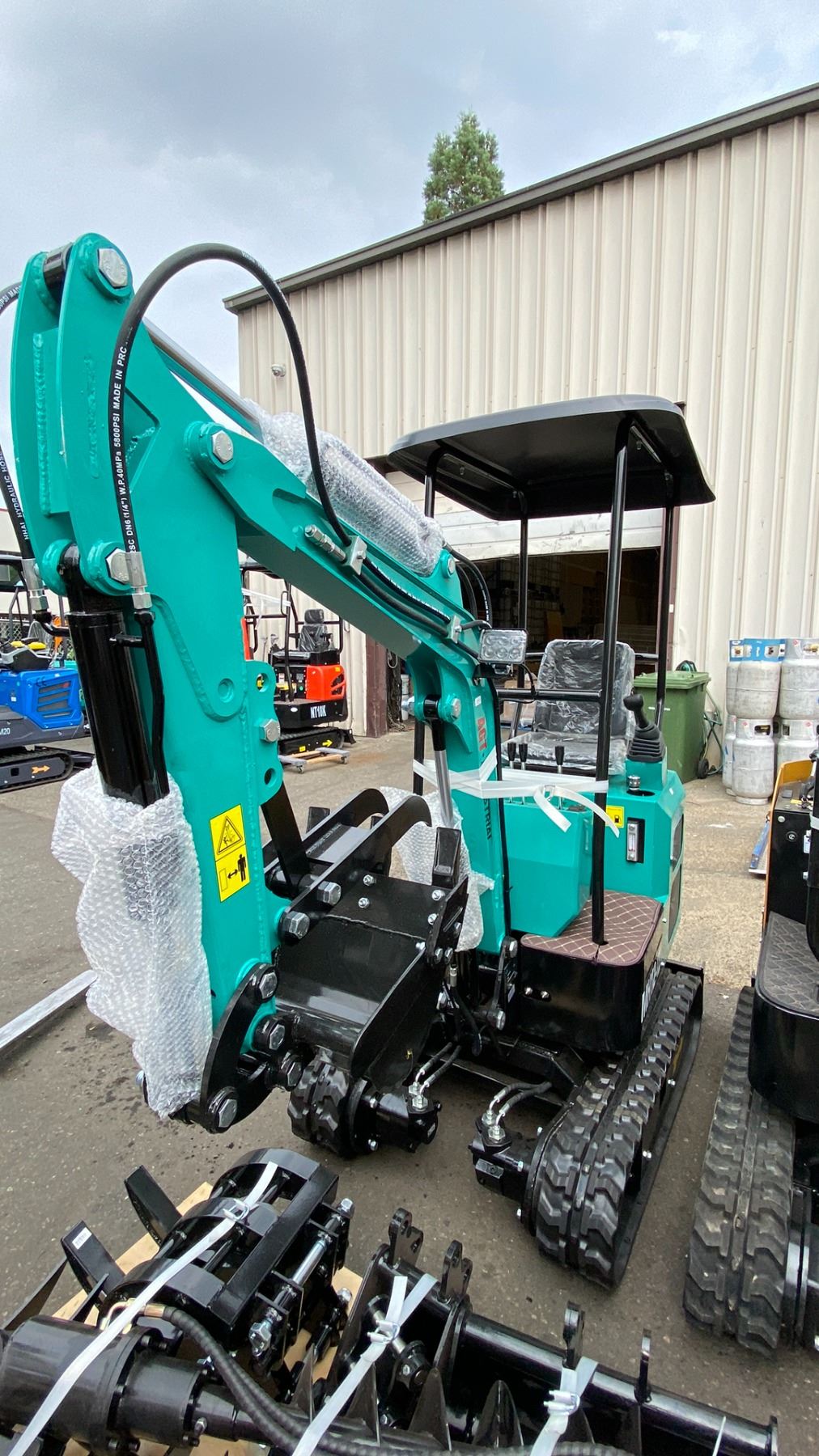 AGT INDUSTRIAL MH12-Z TEAL GAS POWERED RUBBER TRACK MINI EXCAVATOR WITH ATTACHED DIGGING BUCKET, GRADER BLADE, MINI TOOL KIT & KEYS *MEETS CANADIAN EMISSIONS CONTROL REGULATIONS*