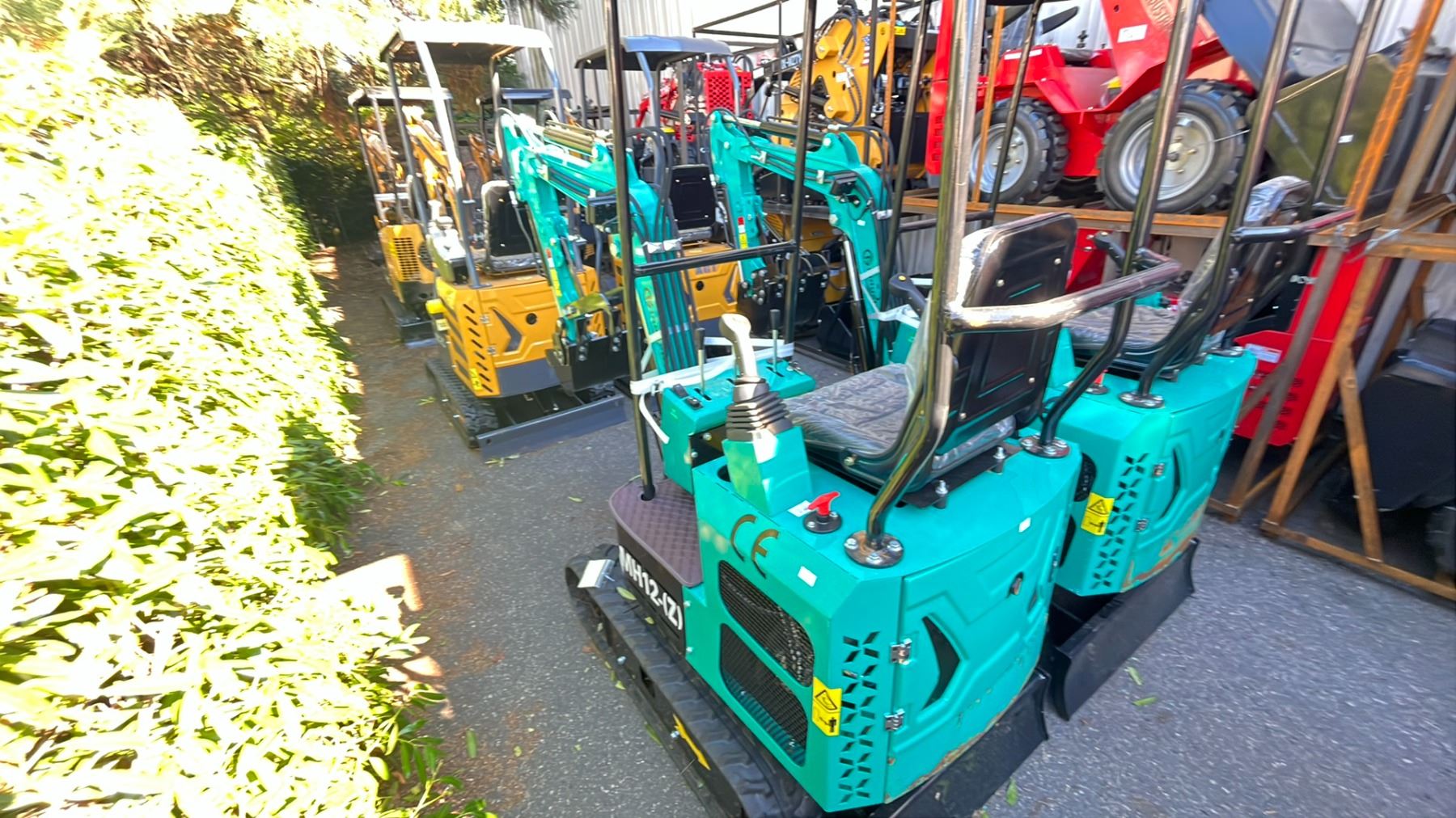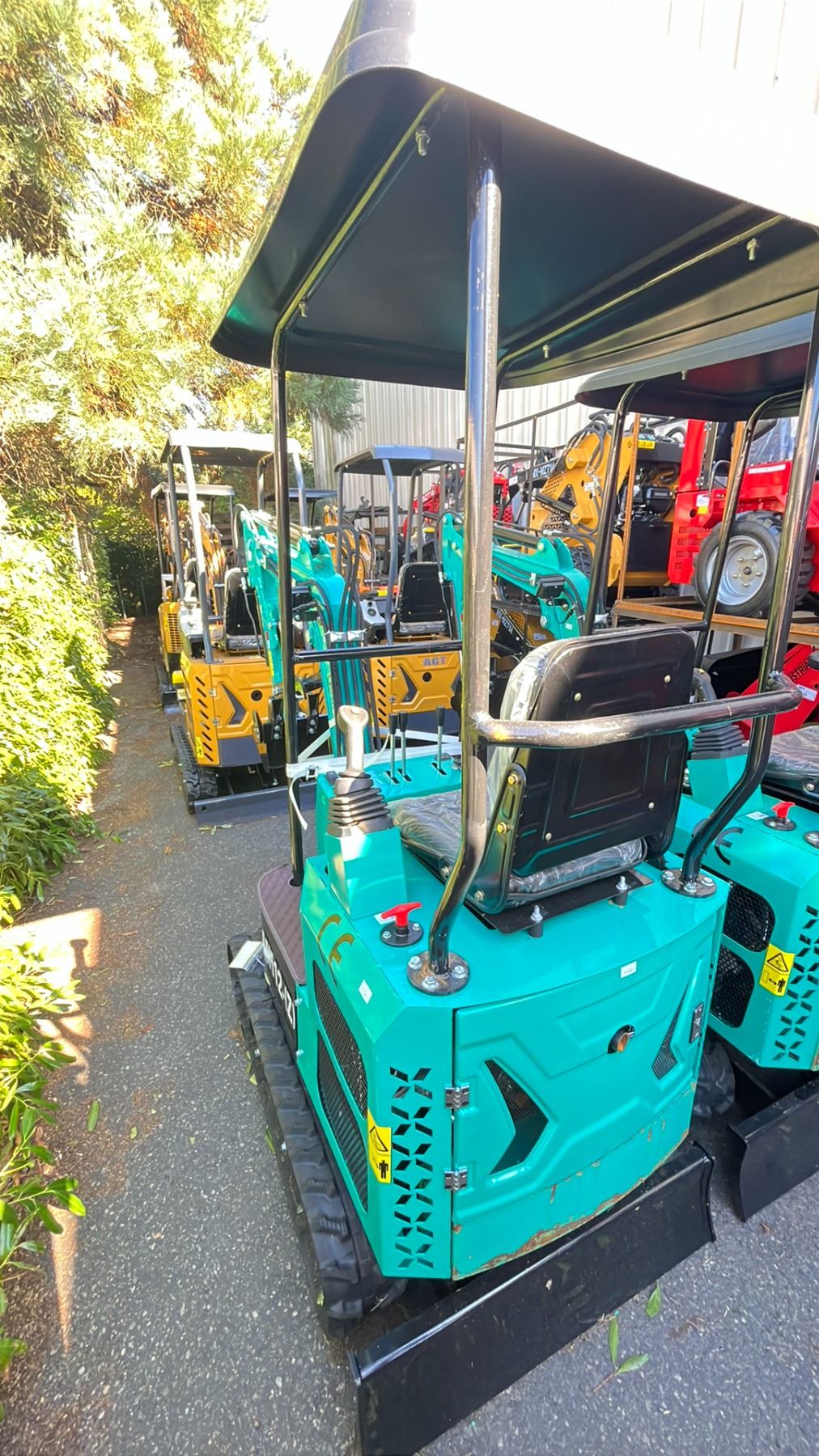 AGT INDUSTRIAL MH12-Z TEAL GAS POWERED RUBBER TRACK MINI EXCAVATOR WITH ATTACHED DIGGING BUCKET, GRADER BLADE, MINI TOOL KIT & KEYS *MEETS CANADIAN EMISSIONS CONTROL REGULATIONS*