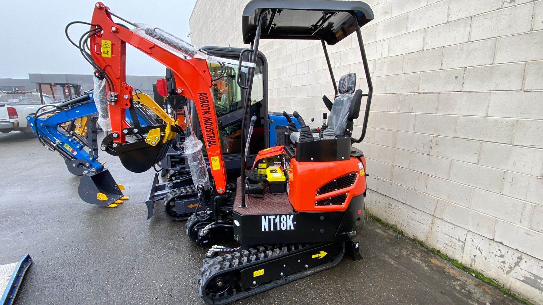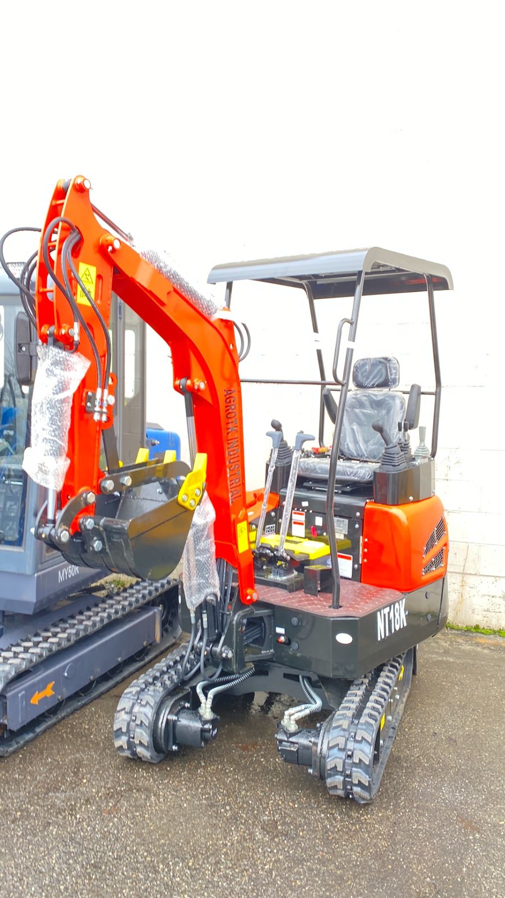 AGT INDUSTRIAL ORANGE NT18K DIESEL POWERED RUBBER TRACK MINI EXCAVATOR WITH ATTACHED DIGGING BUCKET GRADER BLADE, MINI TOOL KIT & KEYS *MEETS CANADIAN EMISSIONS CONTROL REGULATIONS*