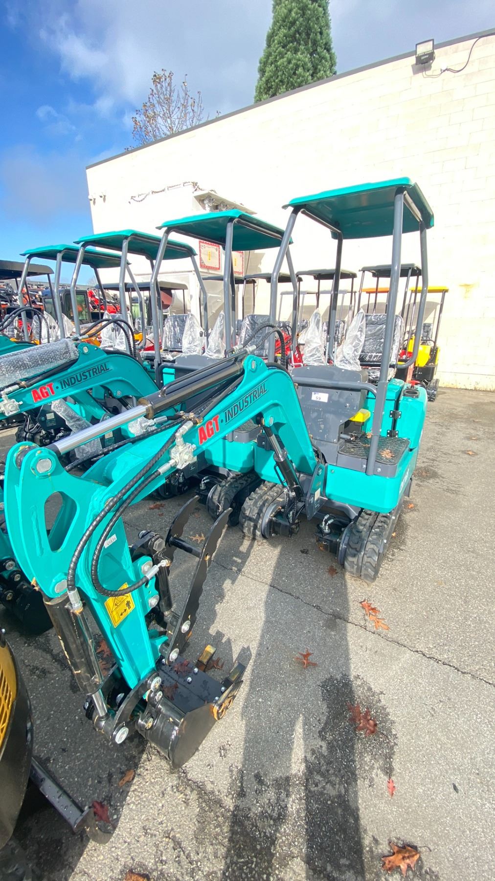 AGT INDUSTRIAL QK16R 2024 GREEN 15 HP GAS POWERED RUBBER TRACK MINI EXCAVATOR WITH ATTACHED 0.025M CUBED CAPACITY DIGGING BUCKET, GRADER BLADE, MINI TOOL KIT & KEYS *MEETS CANADIAN EMISSIONS CONTROL REGULATIONS*