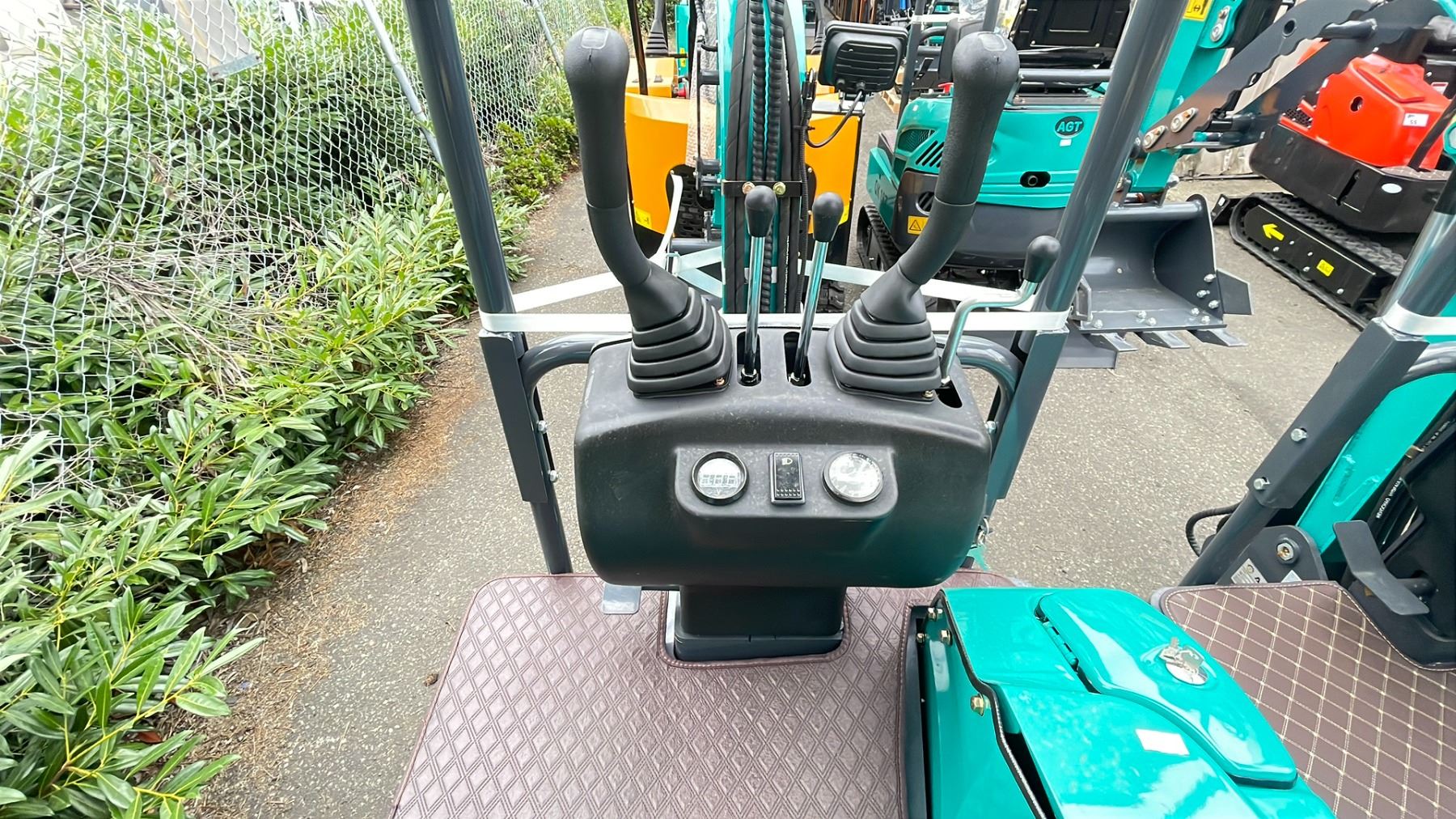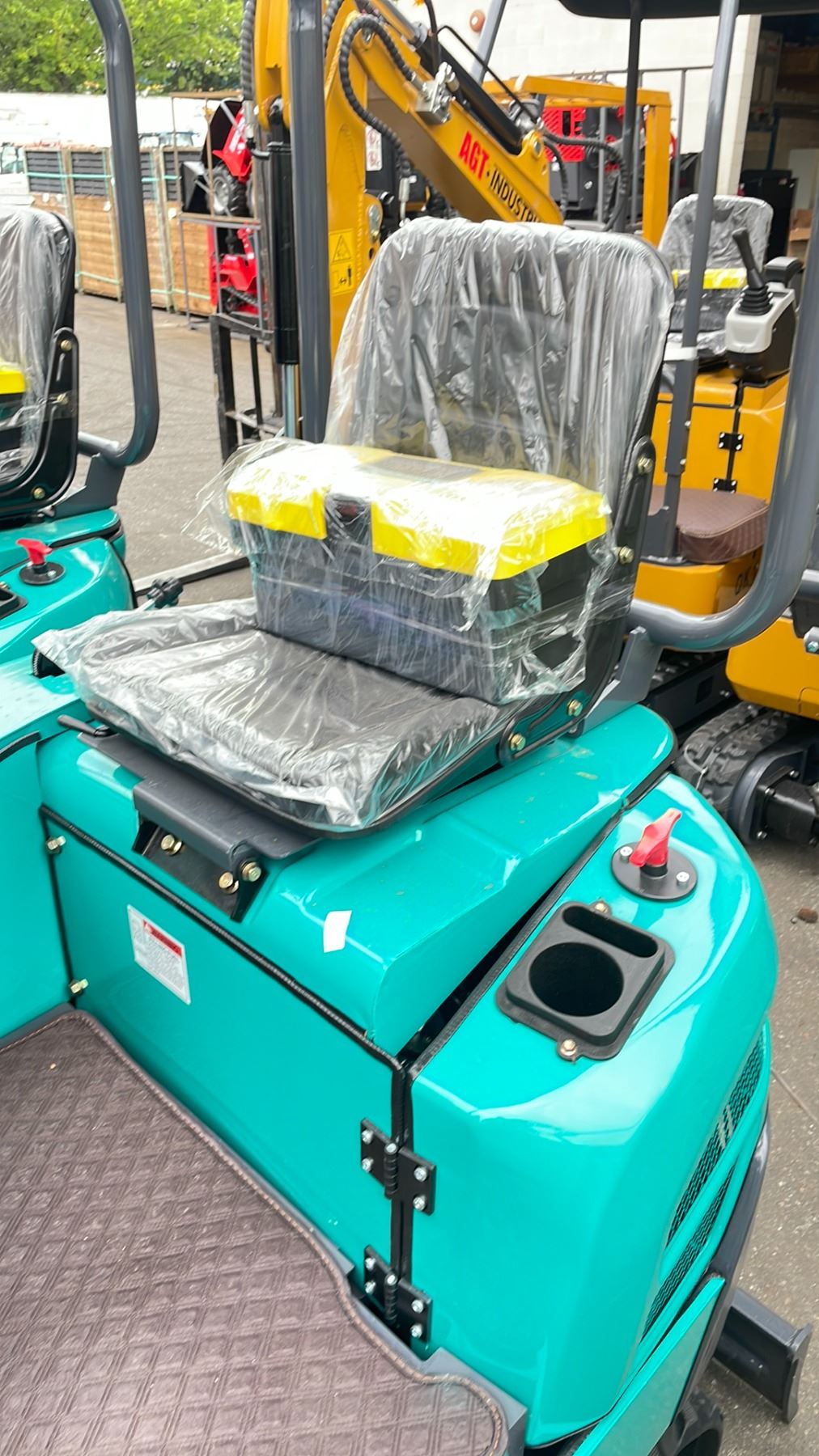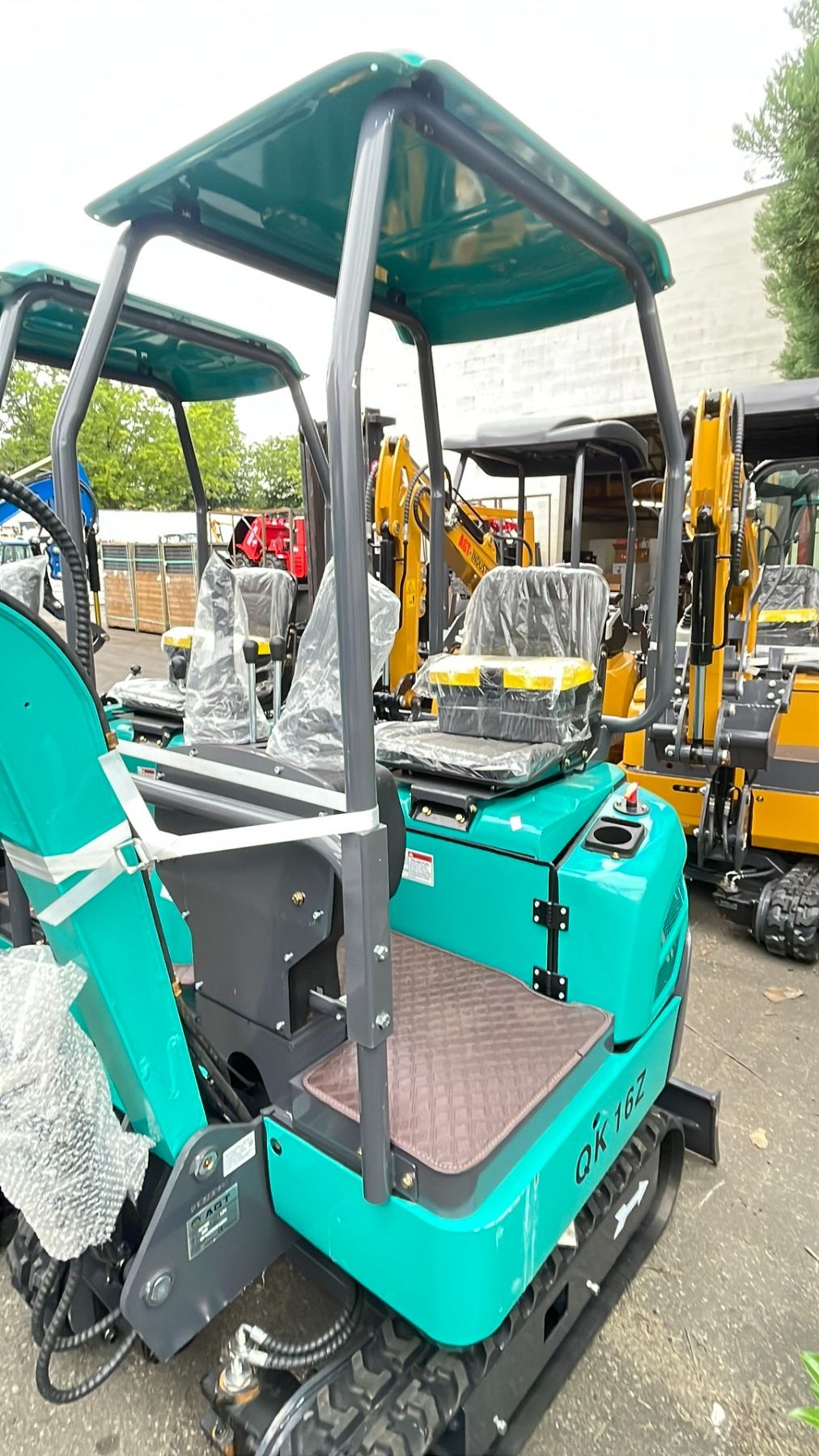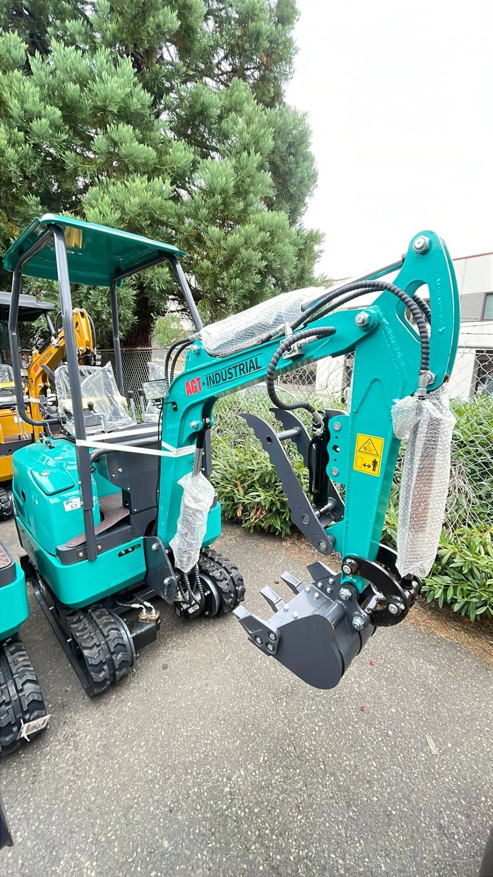 AGT INDUSTRIAL QK16Z TEAL GAS POWERED RUBBER TRACK MINI EXCAVATOR WITH ATTACHED DIGGING BUCKET, GRADER BLADE, MINI TOOL KIT & KEYS, 1,962.11 LBS MAX CAPACITY *MEETS CANADIAN EMISSIONS CONTROL REGULATIONS*