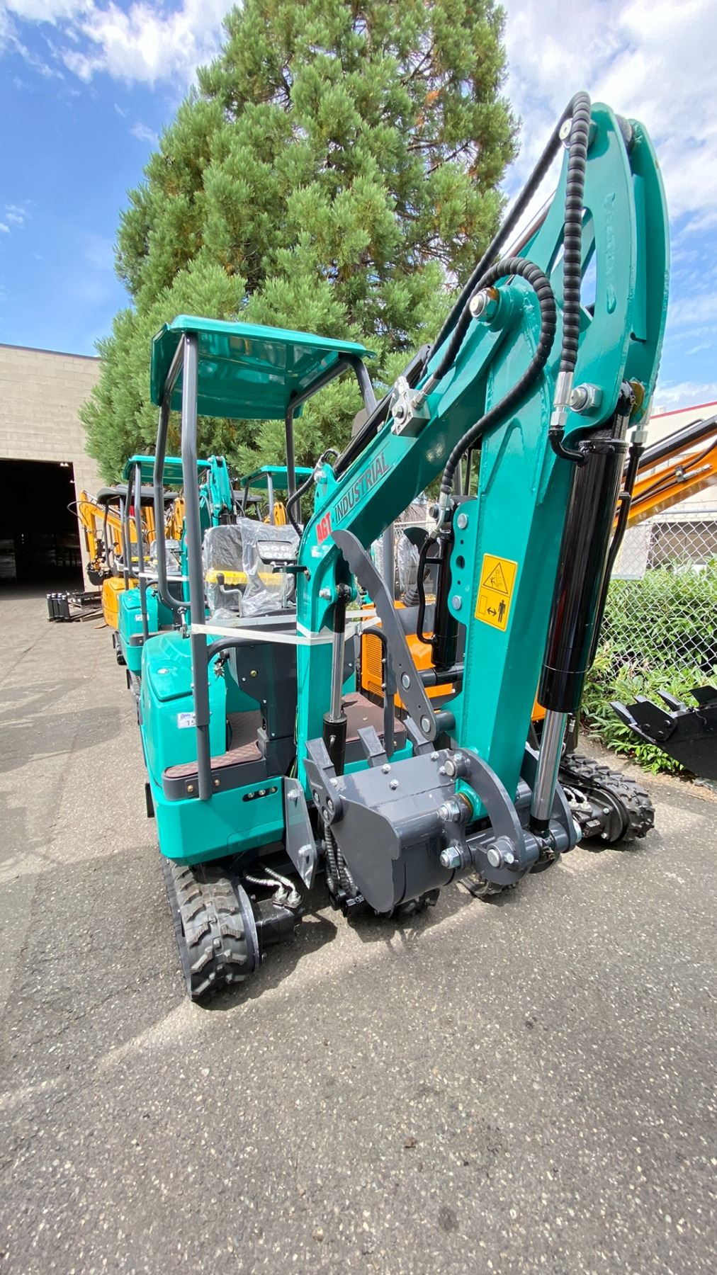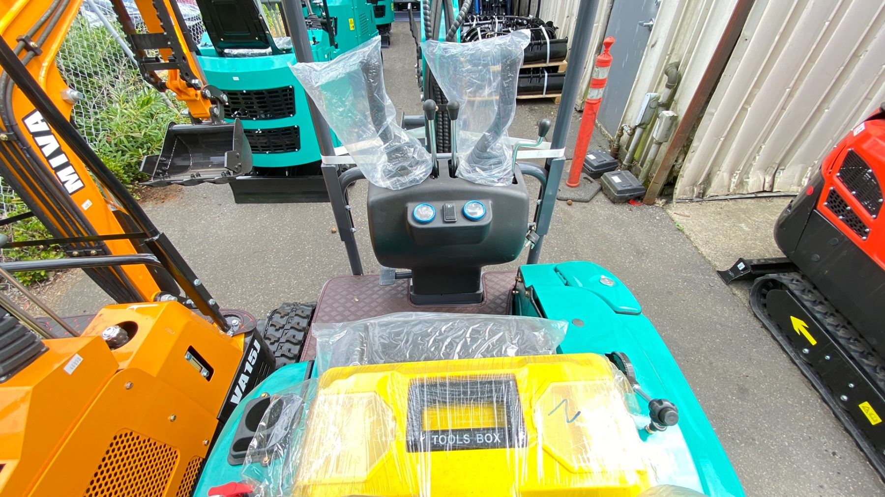 AGT INDUSTRIAL QK16Z TEAL GAS POWERED RUBBER TRACK MINI EXCAVATOR WITH ATTACHED DIGGING BUCKET, GRADER BLADE, MINI TOOL KIT & KEYS, 1,962.11 LBS MAX CAPACITY *MEETS CANADIAN EMISSIONS CONTROL REGULATIONS*