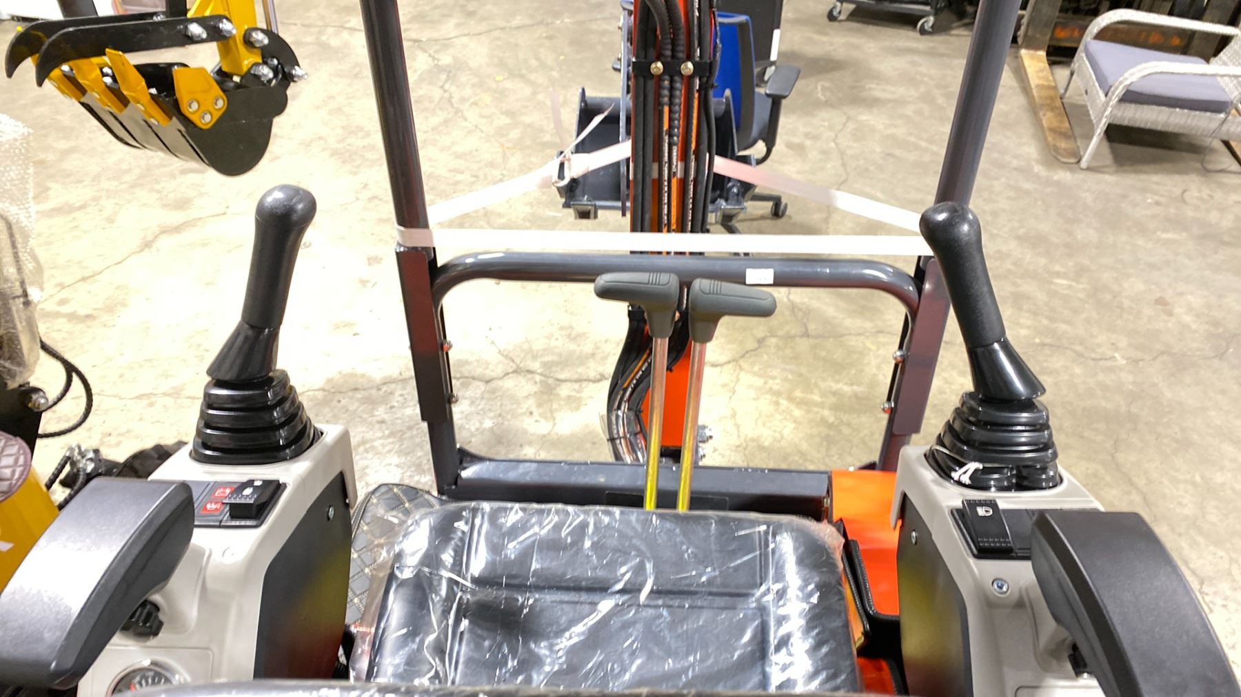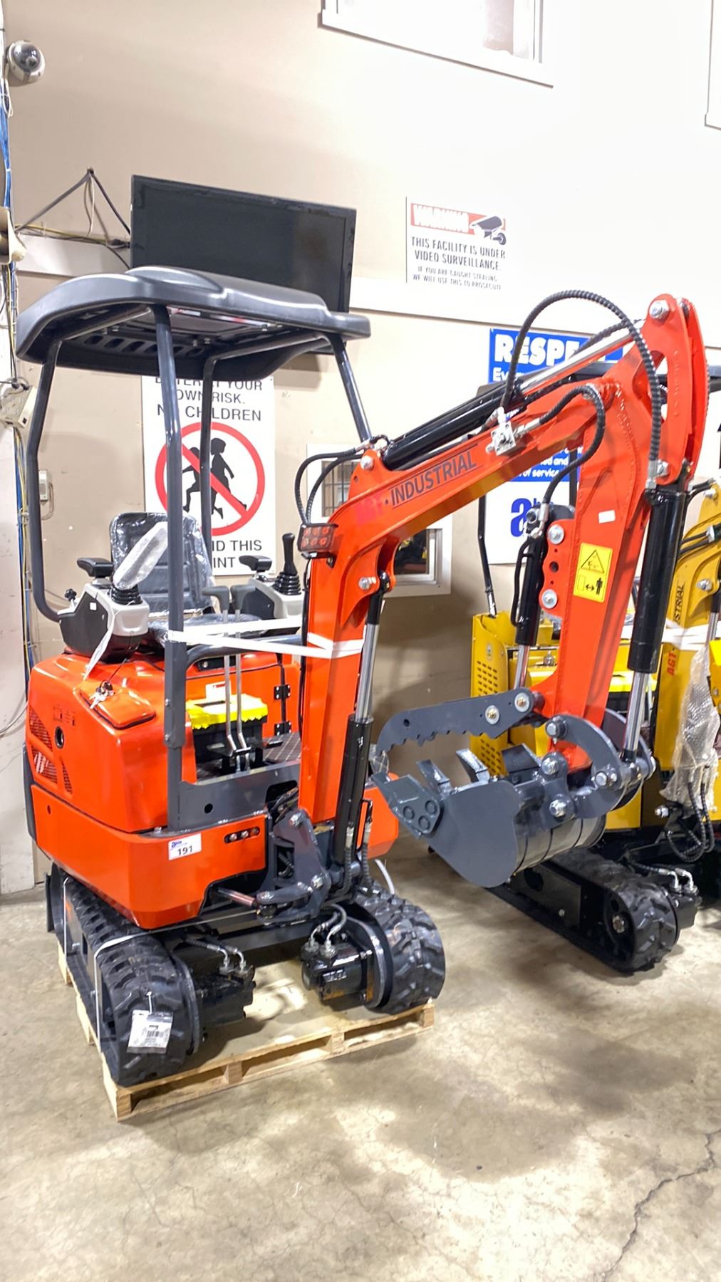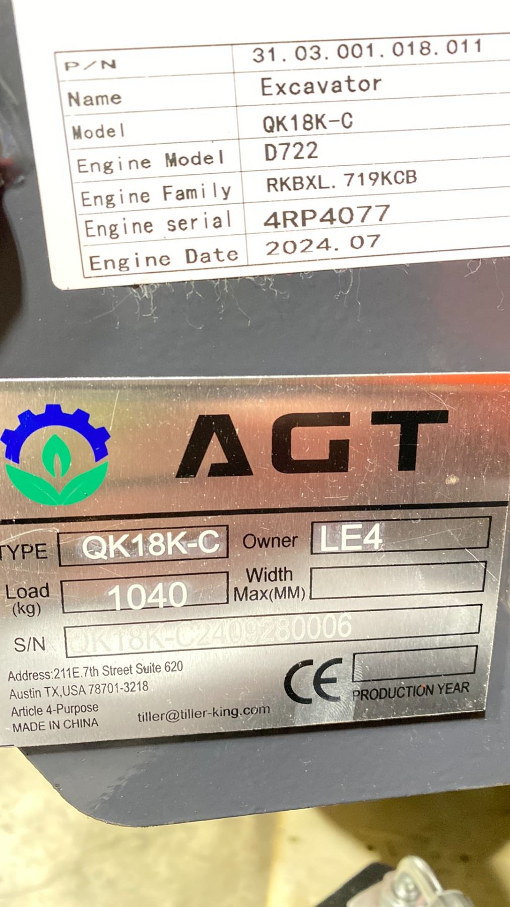AGT INDUSTRIAL QK18K-C 2024 ORANGE 13.5 HP GAS POWERED RUBBER TRACK MINI EXCAVATOR WITH ATTACHED DIGGING BUCKET, GRADER BLADE, MINI TOOL KIT & KEYS *MEETS CANADIAN EMISSIONS CONTROL REGULATIONS*